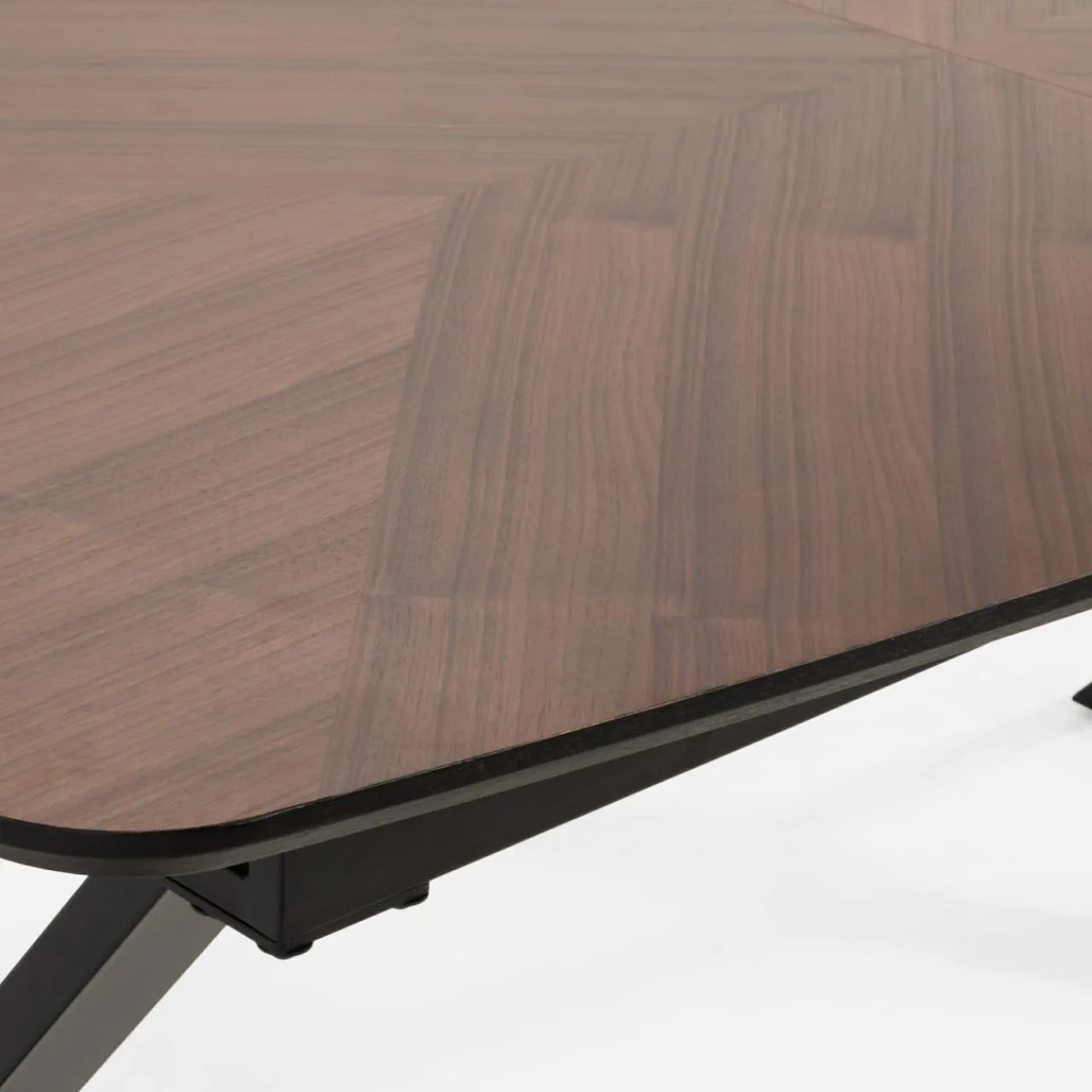 Stół rozkładany RAPSODIO zachwyca wyrazistym wyglądem fornirowego blatu. Nietypowy wzór w jodełkę wprowadza do jadalni klimat retro.