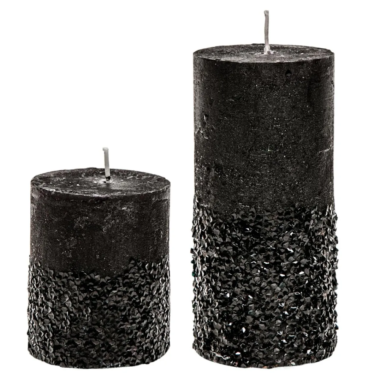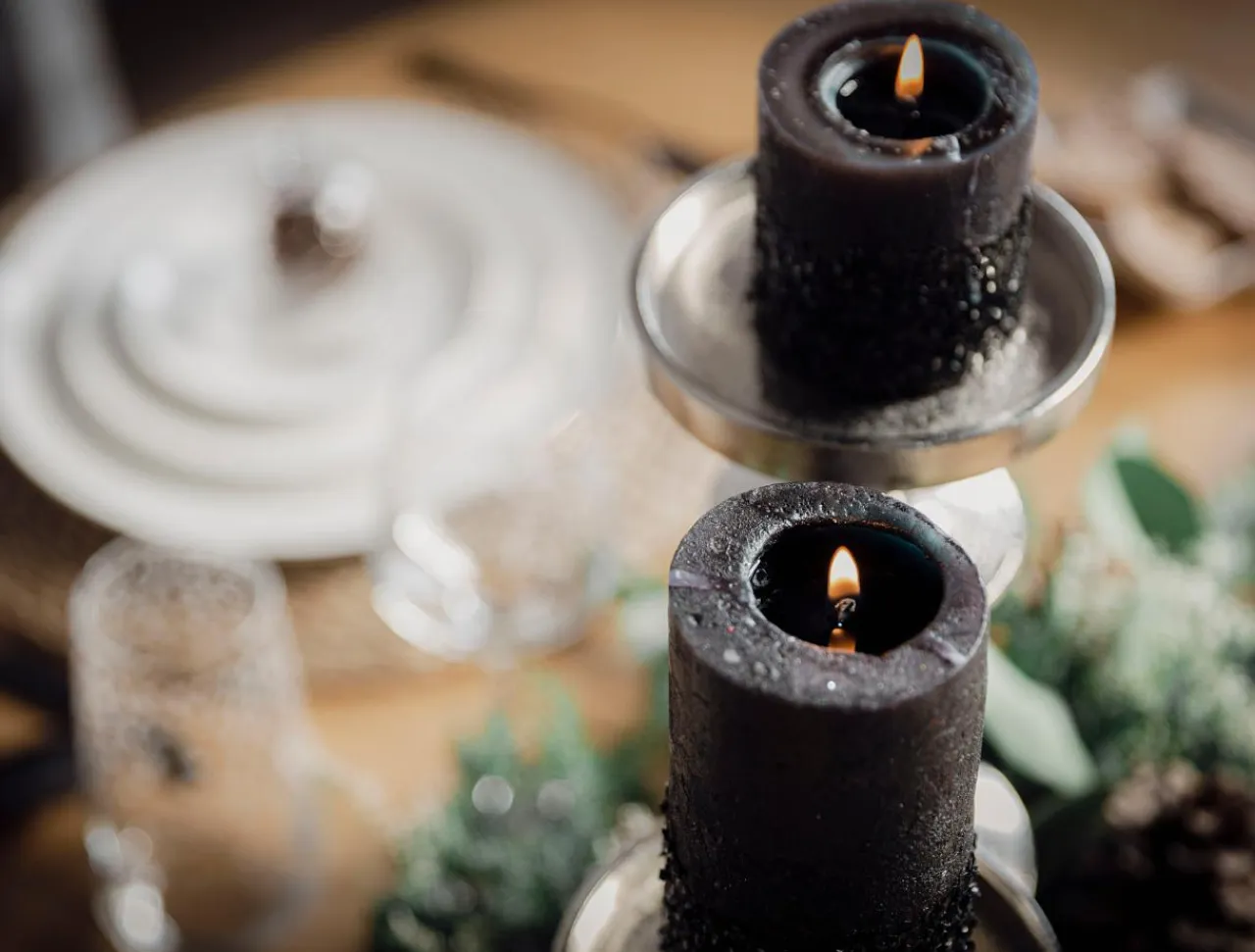 - Czarne błyszczące drobinki nadają świecy charakter glamour;