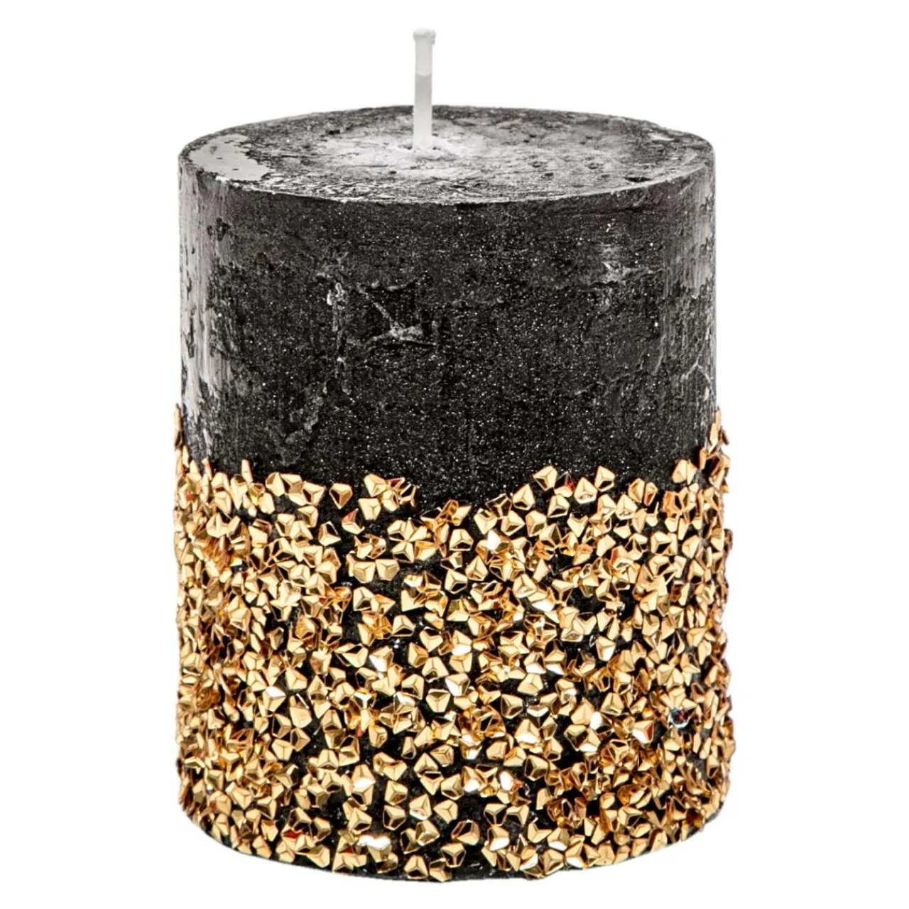 - Złote błyszczące drobinki nadają świecy charakter glamour;