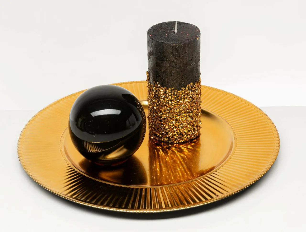 - Złote błyszczące drobinki nadają świecy charakter glamour;