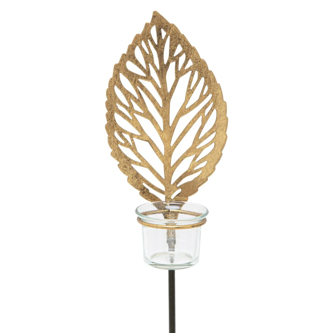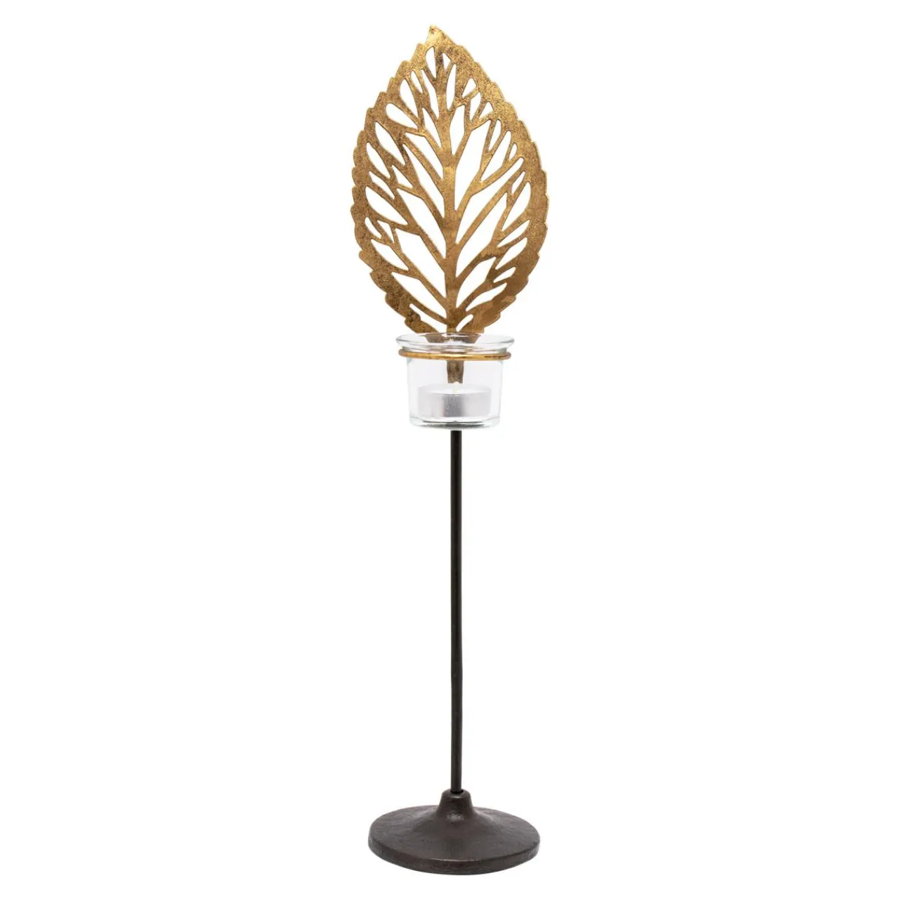 Świece, Świeczniki I Latarenki| Świecznik metalowy LIŚĆ na 1 tealighta 45 cm
