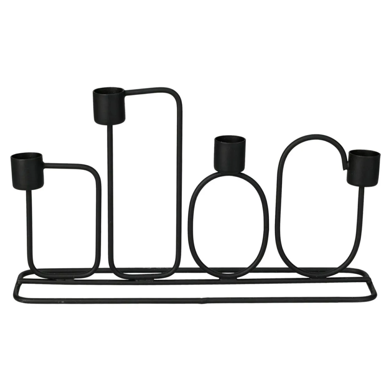 Czarny świecznik na 4 świece udekoruje salon w stylu industrialnym.