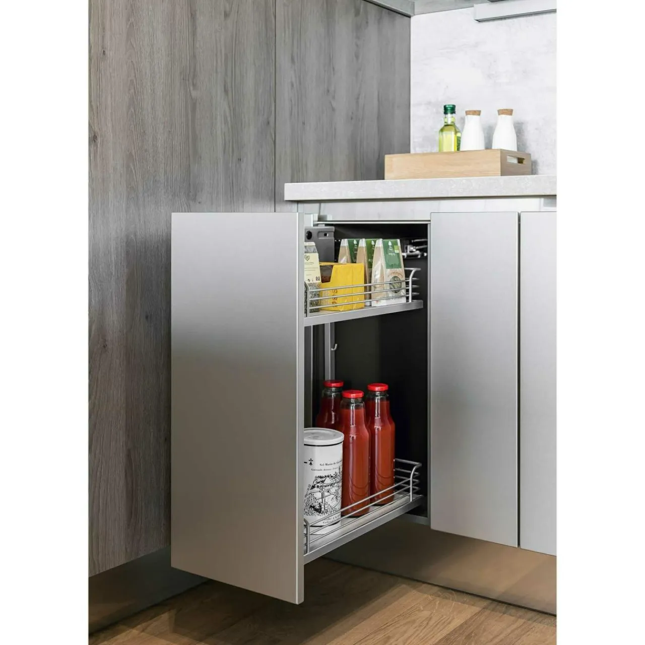 Opcja ta jest idealna pod kątem wykorzystania niewielkich przestrzeni, dlatego ten system ma zwykle zastosowanie w miejscach, w których nie ma możliwości dla umieszczenia szafki lub szuflady. Idealnie sprawdza się jako drobny schowek na butelki przyprawniki, nadzynia lub artykuły spożywcze.