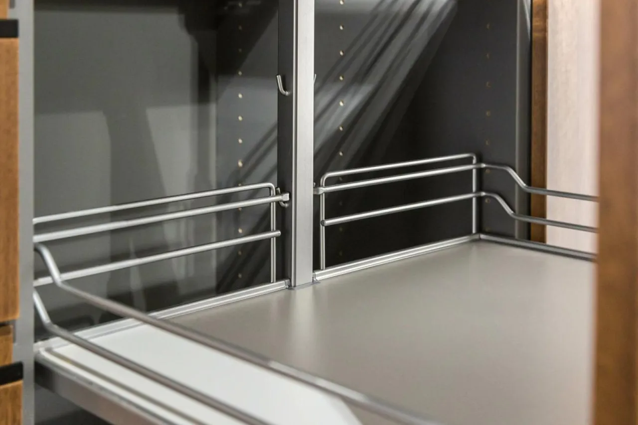 Dzięki prowadnicom pełnego wysuwu oraz systemowi cichego domyku obsługa półek cargo jest przyjemna i komfortowa.