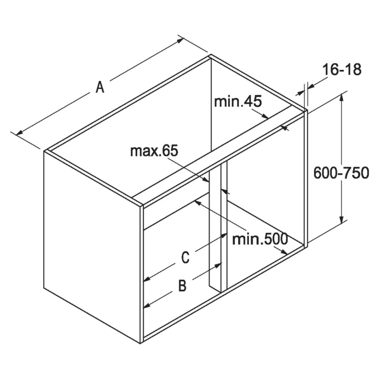 Cargo Inside Star należy montować we wnętrzu szafki o minimalnej szerokości 90 cm i wysokości co najmniej 60 cm.