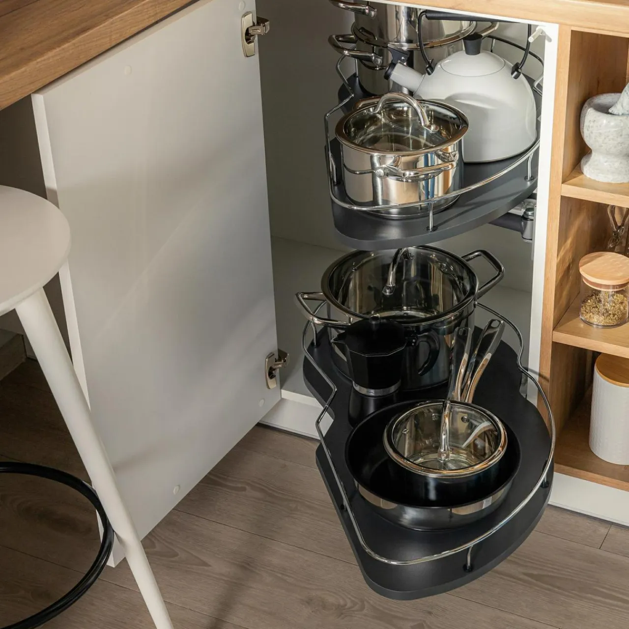 Ten model półek cargo został przeznaczony do szafek narożnych o szerokości 80 cm.