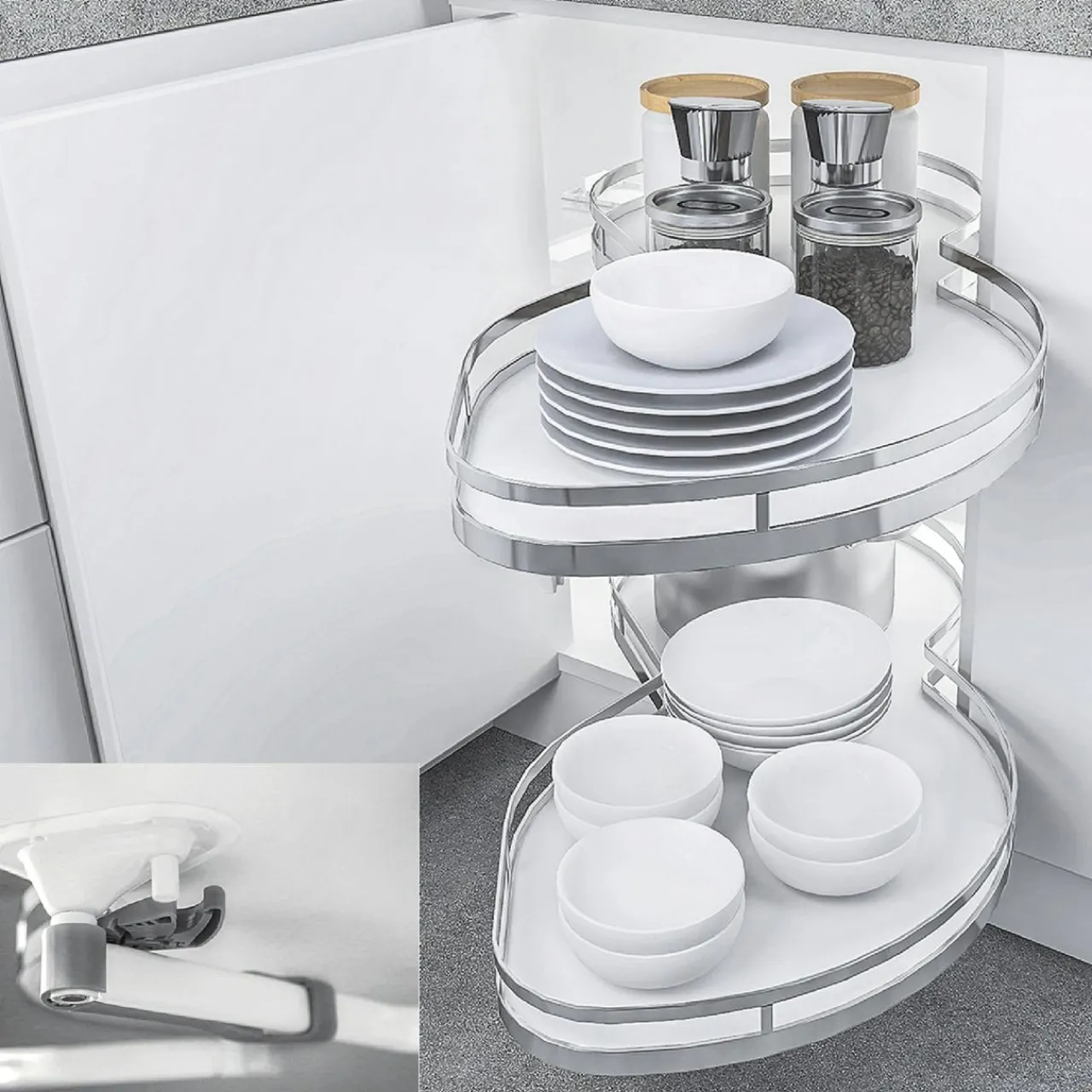 - Wysuwane, pionowe szuflady, ruchome koszyki, czy półki montowane w szafkach narożnych – pozwalają w intuicyjny sposób wykorzystać przestrzeń i skutecznie nią zarządzać.