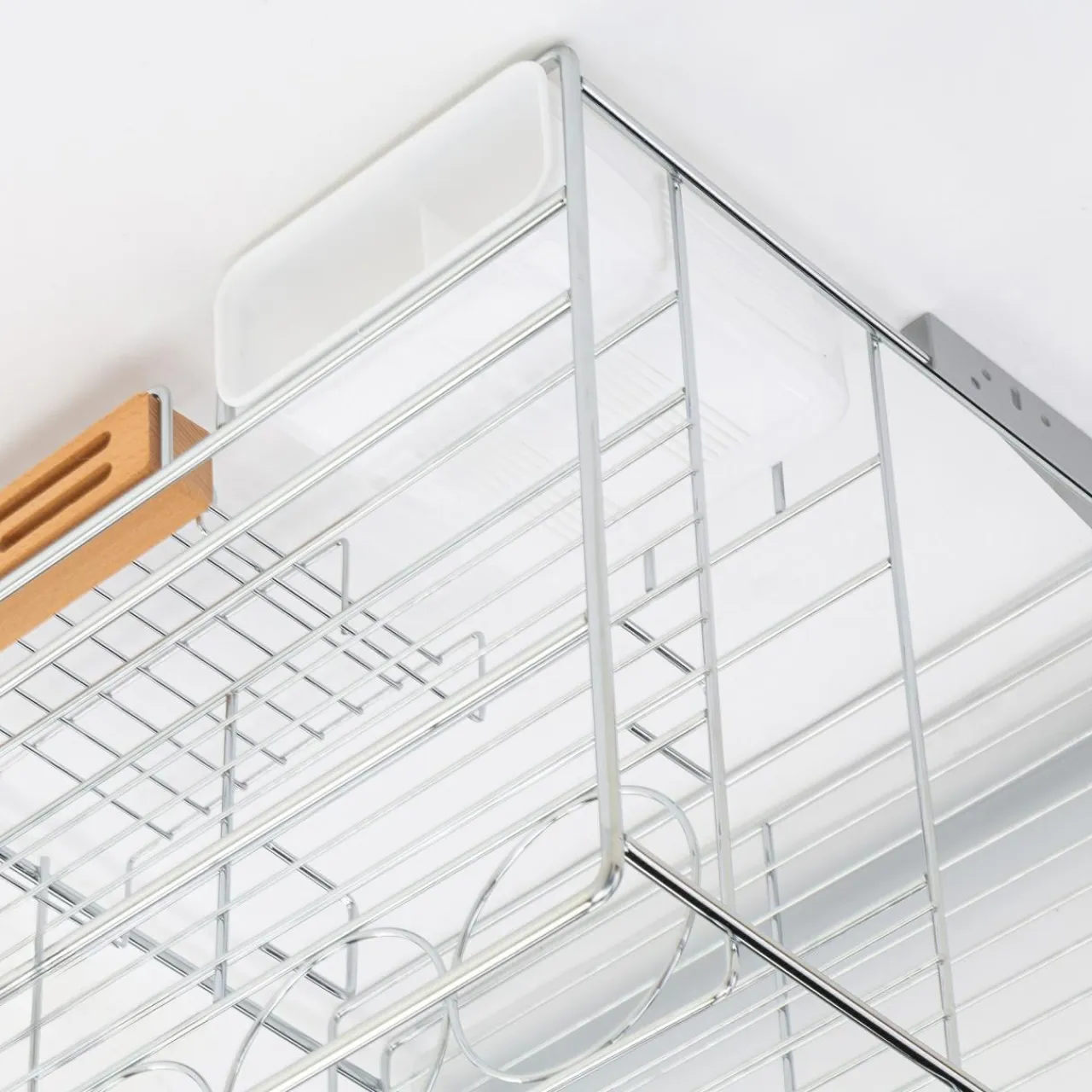 W jego górnej części umieścisz niewielkie pojemniki z żywnością oraz akcesoriami kuchennymi, a dolną część przeznaczysz na wysokie butelki z sokami i kompotami. Umożliwią Ci to specjalnie zaprojektowane uchwyty, które odpowiadają za ich stabilne ustawienie.