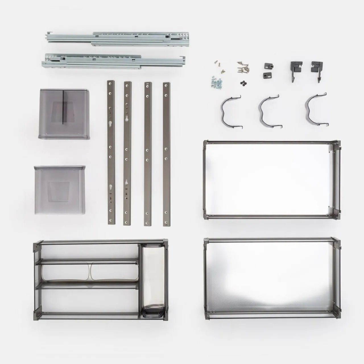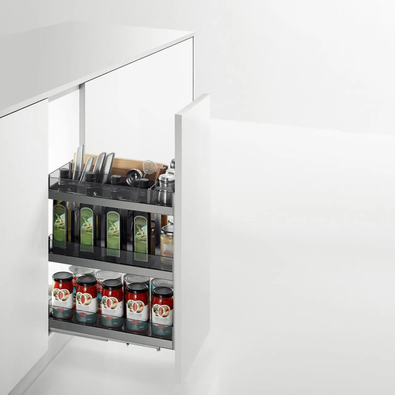 Wszystkie te elementy zaprojektowane ze smakiem i dbałością o detale, zostały przystosowane do montażu na wysuwanych prowadnicach.