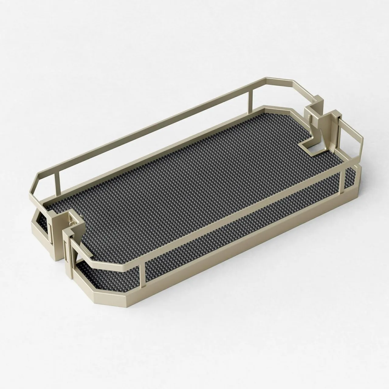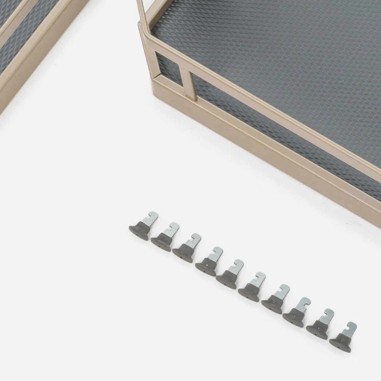 - Podstawa koszy została wykończona ciemnoszarym kolorem, natomiast brzegi i ścianki są w matowym odcieniu champagne gold. Ożywi on jasne wnętrza i pięknie zaakcentuje kuchnię w klimacie loft oraz retro.