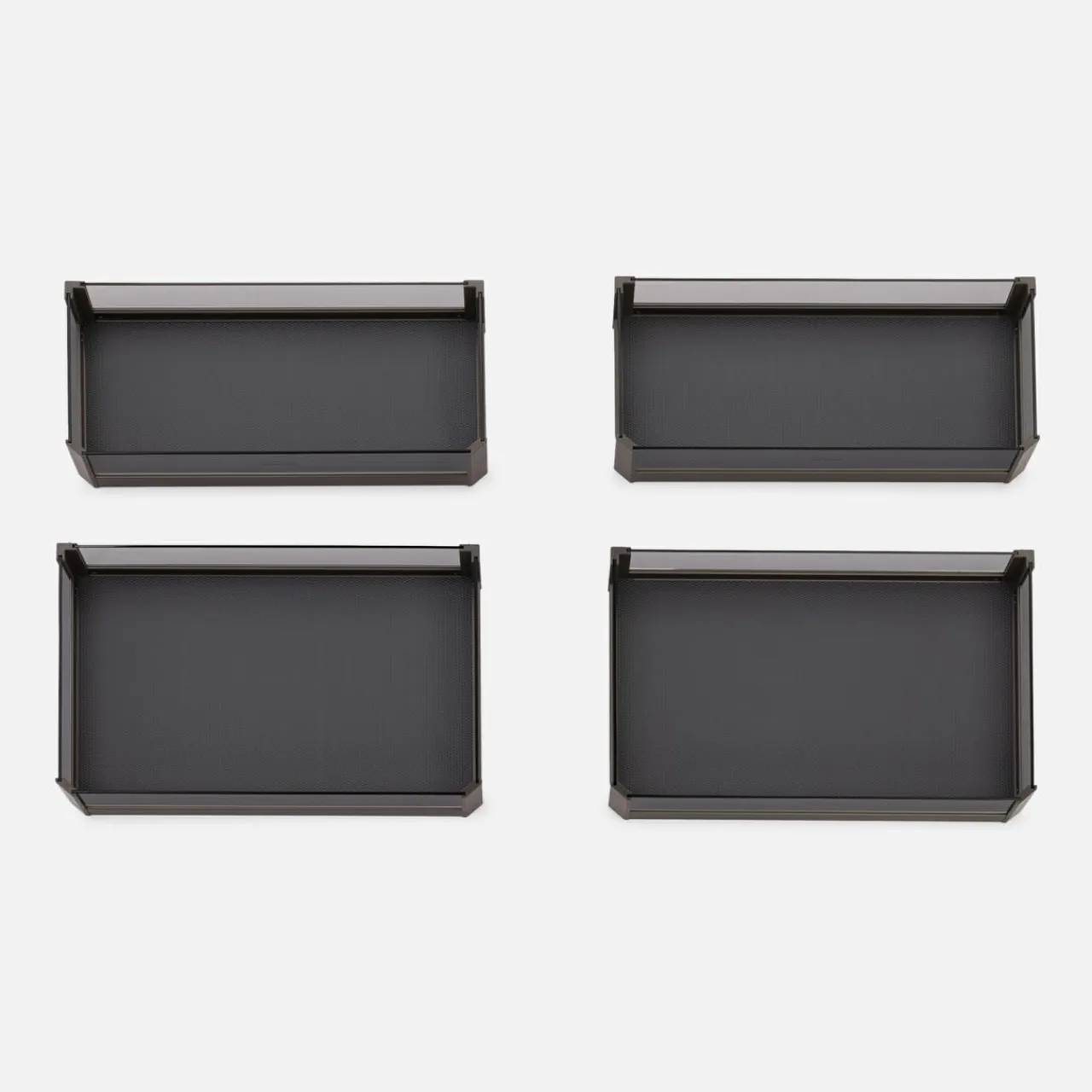Zestaw 4 koszy jest częścią prawo- i lewostronnej wersji stelaża VORTUNG. Są dopasowane do niego pod względem koloru oraz wymiaru i przeznaczone do szafek zabudowy narożnej.