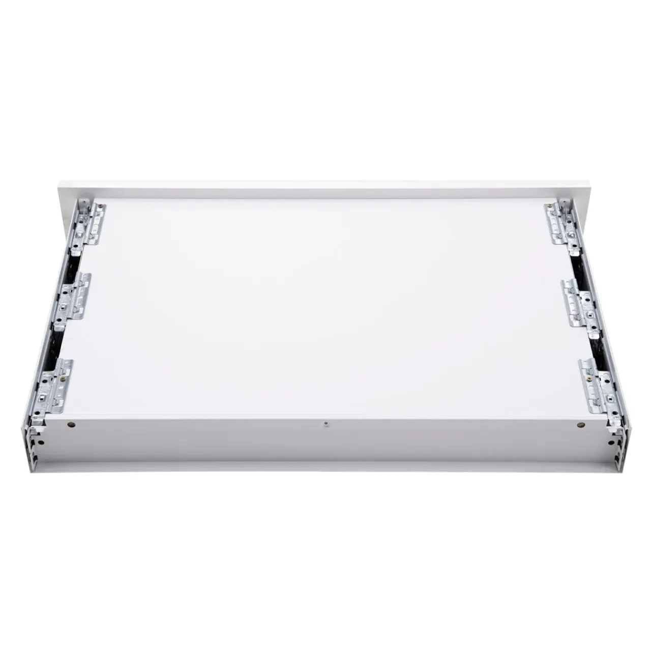 Niniejszy model szuflady INSIDE SYSTEM BOX został przeznaczony do montażu z niskim frontem o szerokości 80 cm. Jej uniwersalny, biały kolor podkreśla nowoczesny design i sprawia, że pasuje praktycznie do każdego wykończenia.