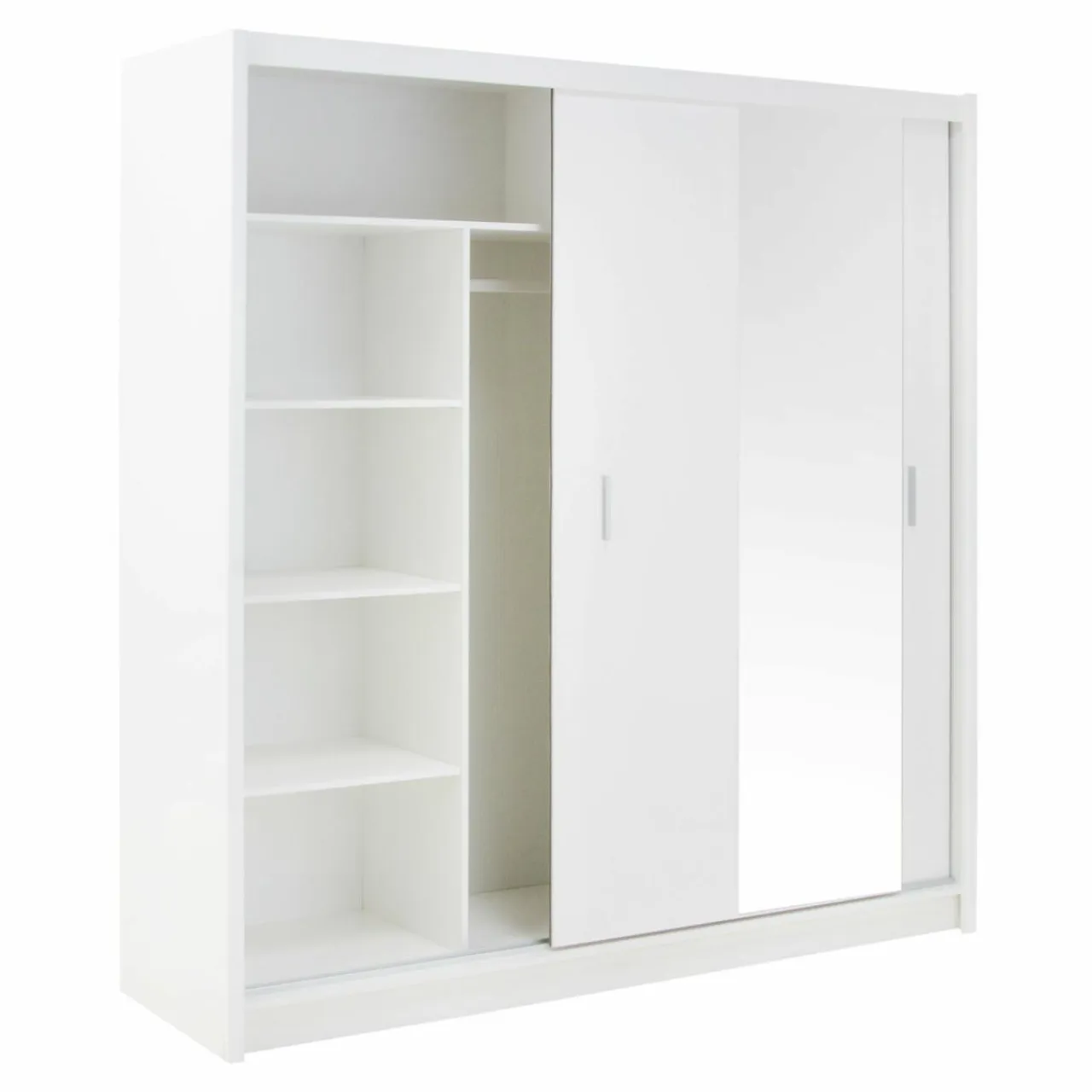 Przestrzenna i praktyczna szafa w klasycznej bieli świetnie sprawdza się w sypialni, garderobie lub przedpokoju, nie dominując przestrzeni.