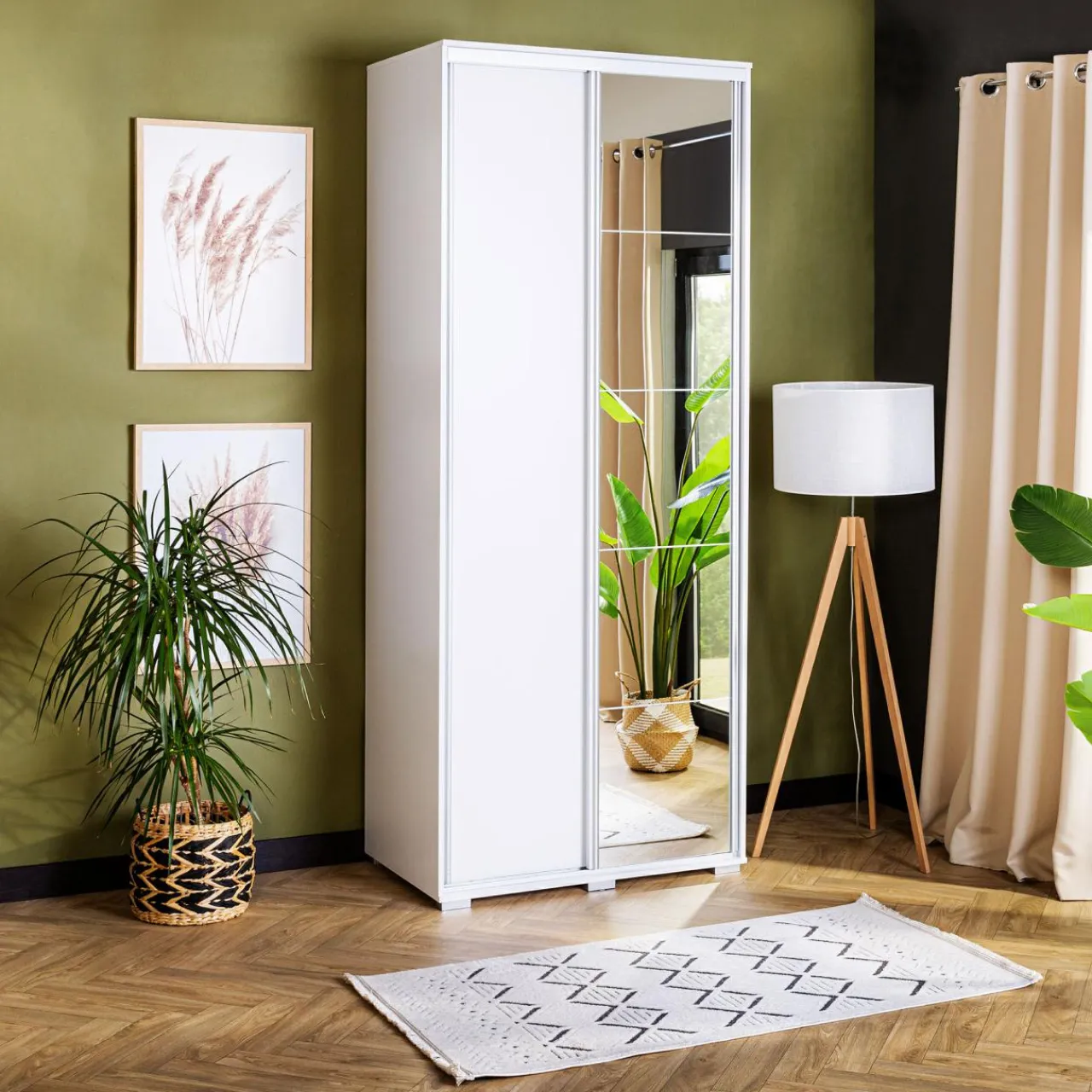 Dzięki drzwiom przesuwnym z łatwością skorzystasz z szafy w wąskim przedpokoju lub niewielkiej sypialni.
