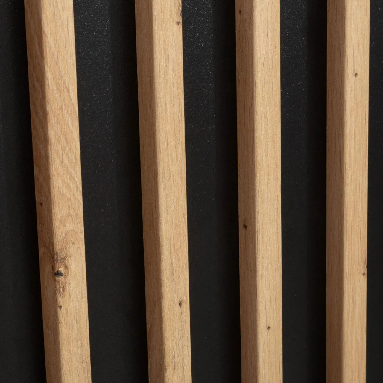 - Front stanowi czarna laminowana płyta ozdobiona lamelami w kolorze drewna (złoty craft).