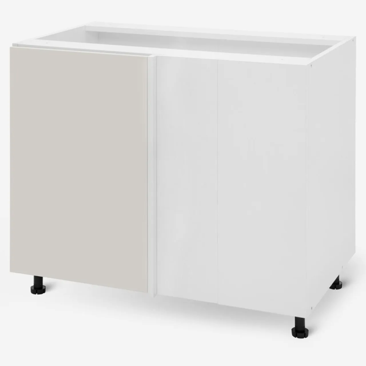 - Dodatkowe możliwości dopasowania szafek stwarzają regulowane nóżki w szafkach dolnych oraz zawieszki ułatwiające poziomowanie przy szafkach górnych.