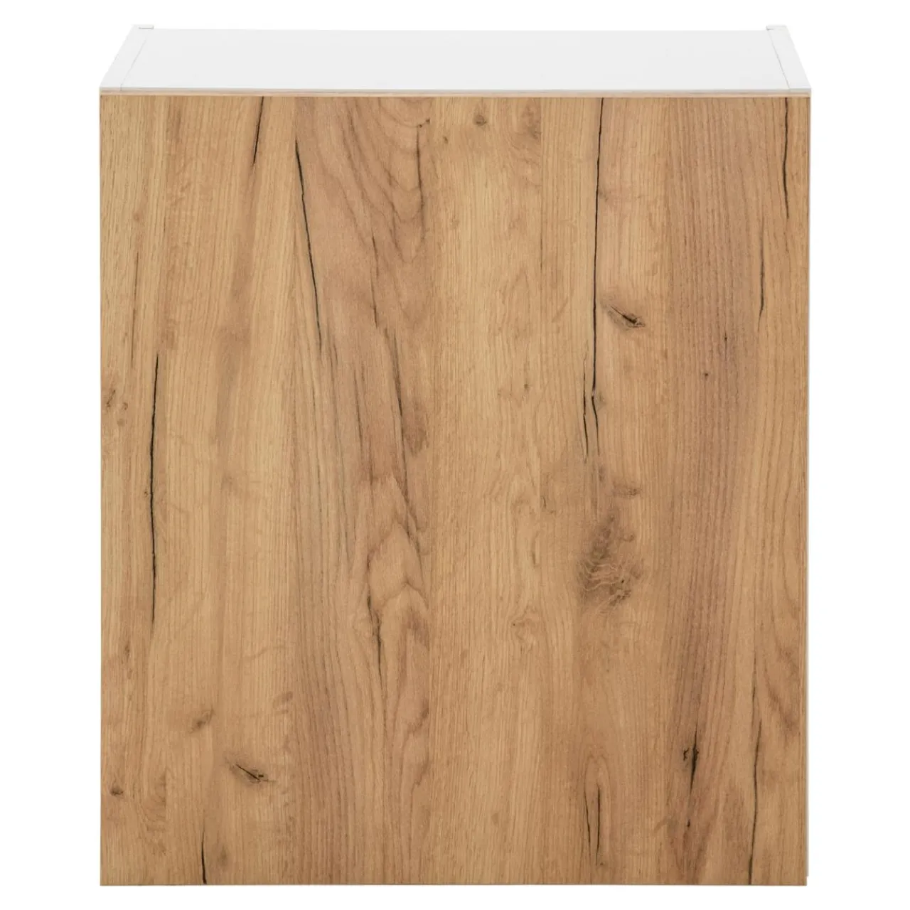 Front szafki został wykończony w kolorze dąb craft złoty. Jego kolorystyka dodaje ciepła i naturalności oraz rozjaśnia optycznie przestrzeń. Świetnie wygląda w połączeniu zarówno z ciepłym, jak i z chłodnym wnętrzem, a charakterystyczna dla dębu faktura drewna dodaje całości elegancji.