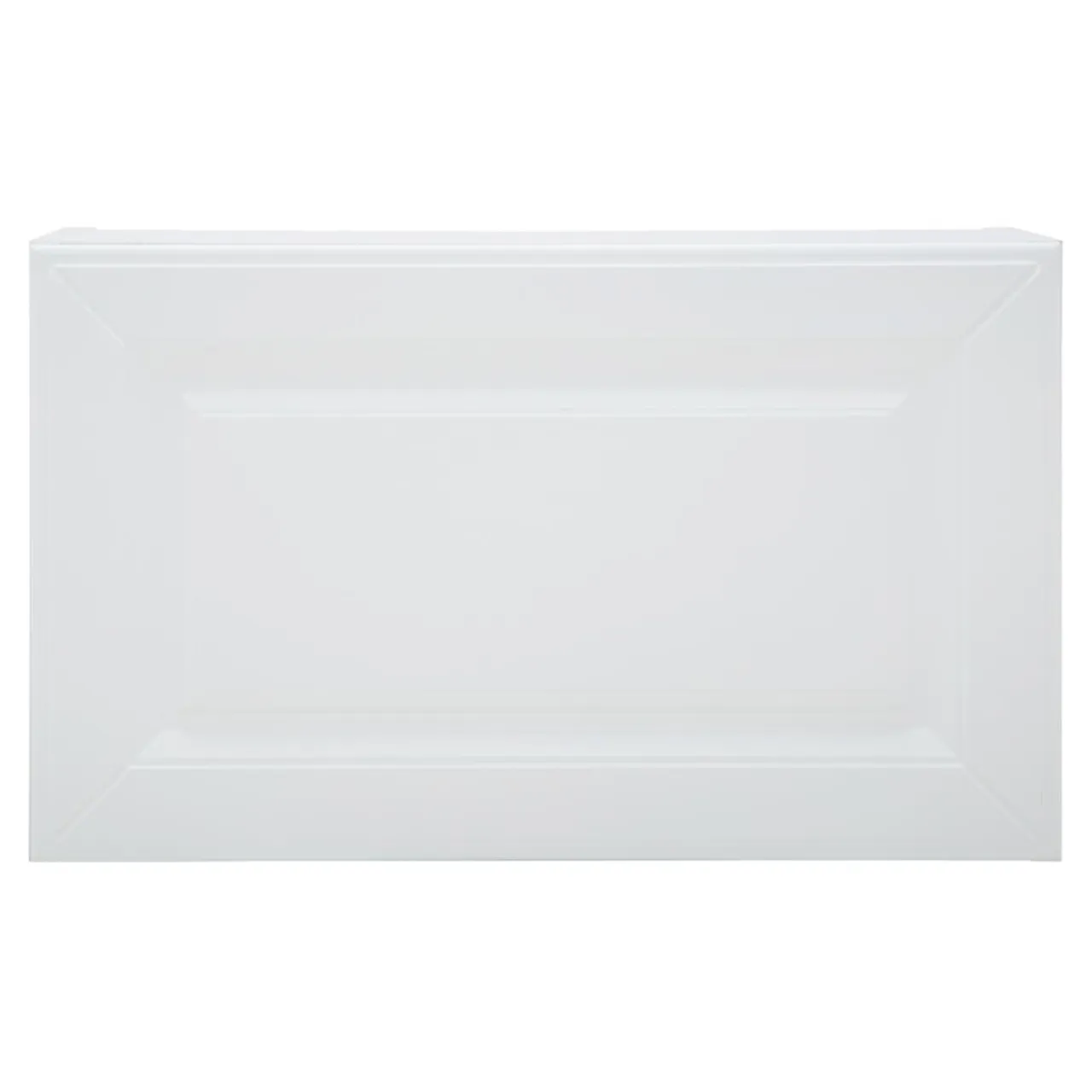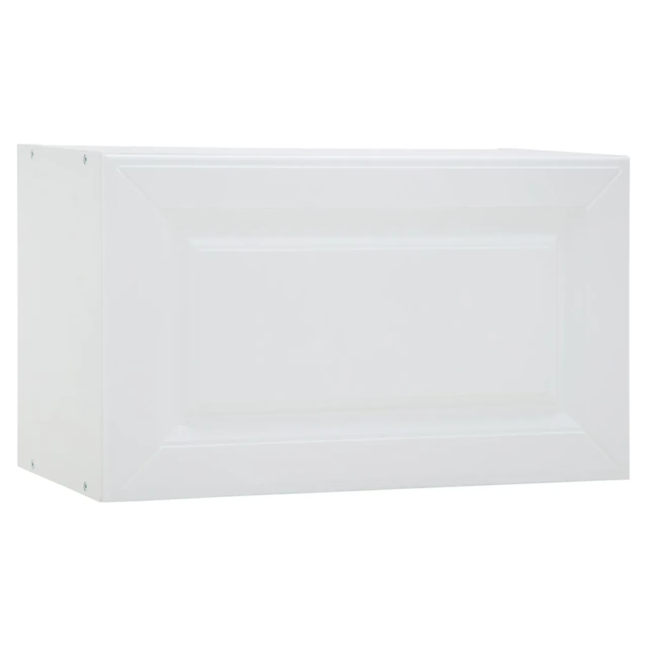 Front szafki został wykończony w matowym odcieniu bieli. Uwagę zwraca charakterystyczna ramka, wewnątrz której umieszczone zostało zdobienie. Drzwi otwierają się do góry, dzięki gazowym siłownikom. Wnętrze idealne nadaje się dla niewielkich naczyń oraz produktów żywnościowych i przypraw, które dobrze mieć w zasięgu ręki podczas przyrządzania posiłków. Przy podstawie szafki znajduje się panel z oświetleniem LED.