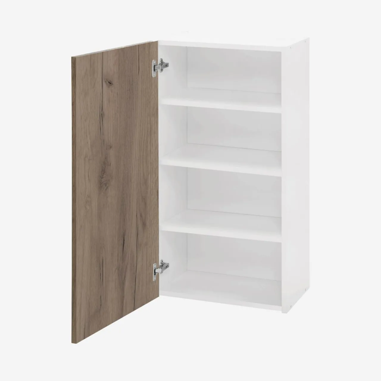 - Szeroka na 50 cm idealnie sprawdzi się do przechowywania naczyń, szklanej zastawy i sypkich produktów – mąki, kaszy.