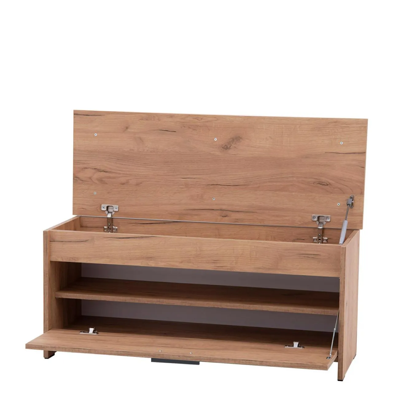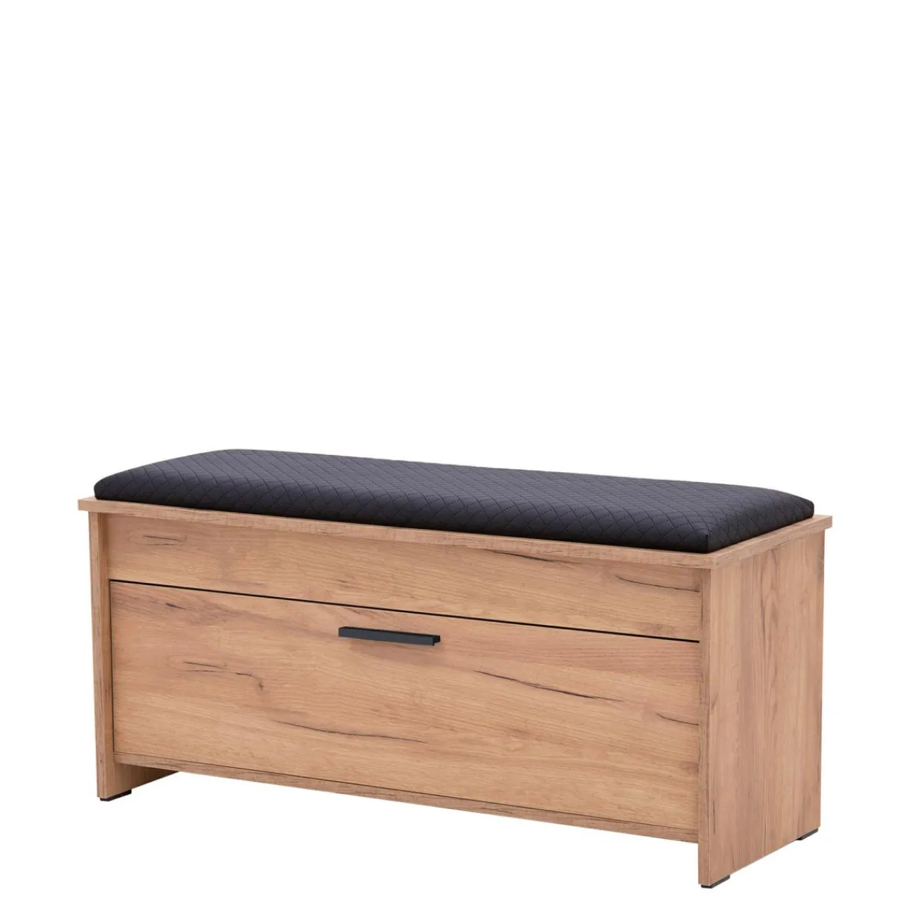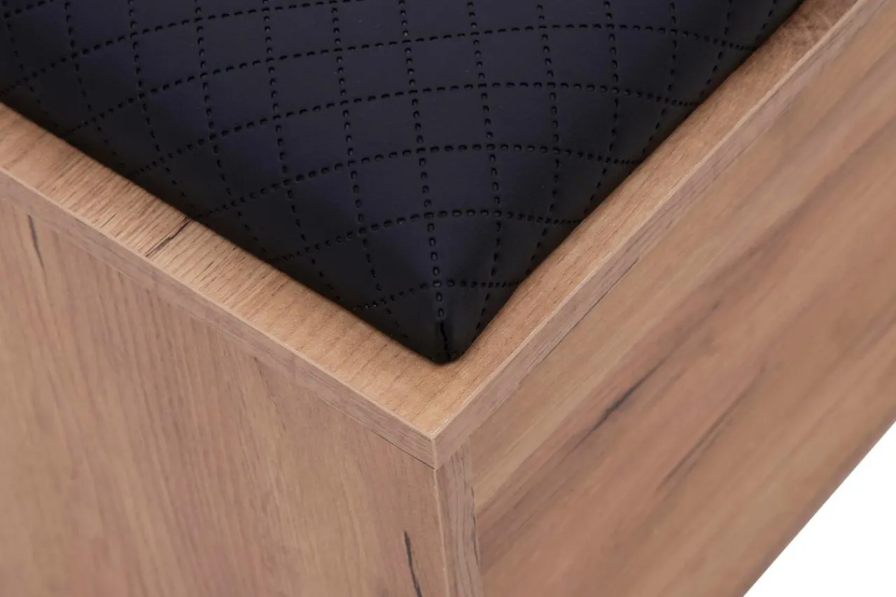 - Tapicerowane siedzisko w ciemnym kolorze dodaje szafce szyku klasycznej elegancji i wpasuje się w wiele rozwiązań aranżacyjnych przedpokoju.