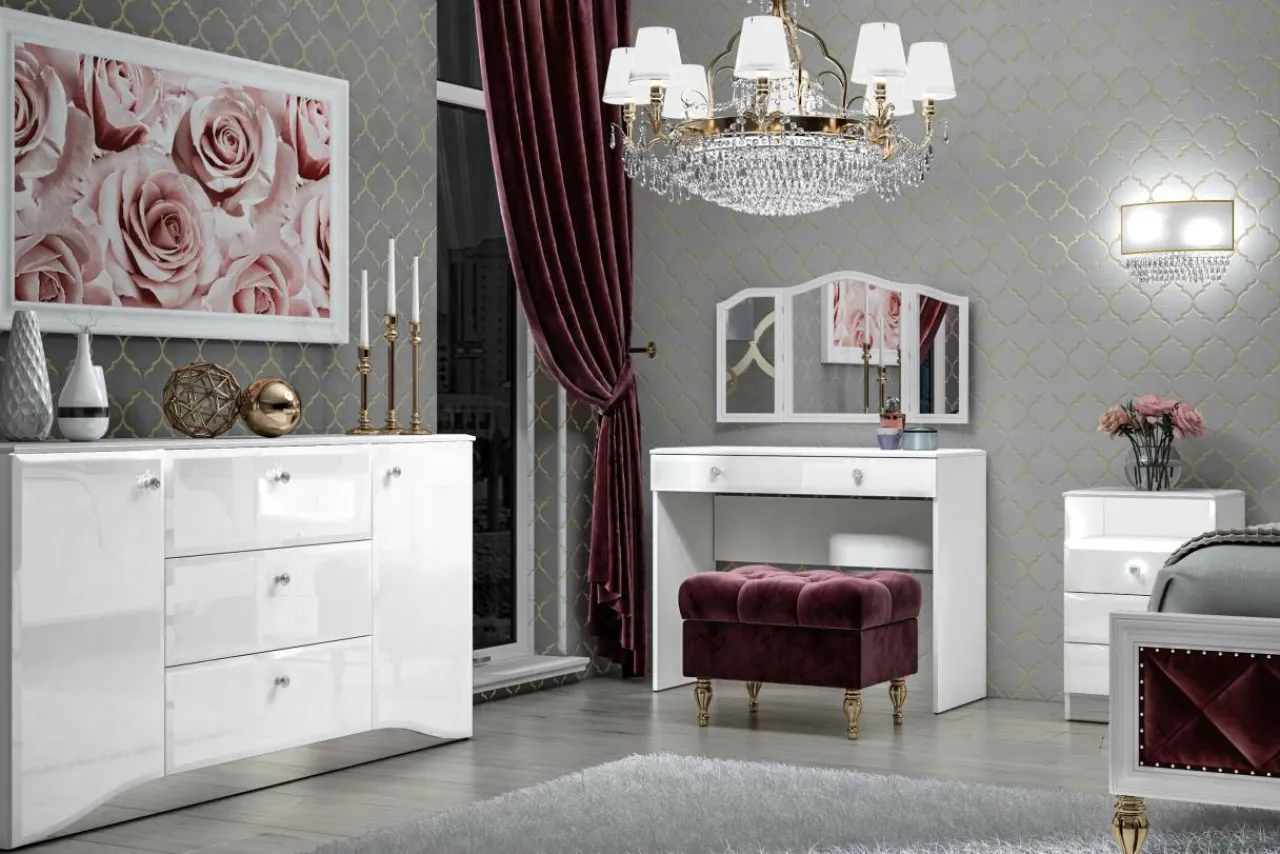 - Szafka GLAMOUR posiada uchwyty w formie kryształków, które podkreślają charakter kolekcji.