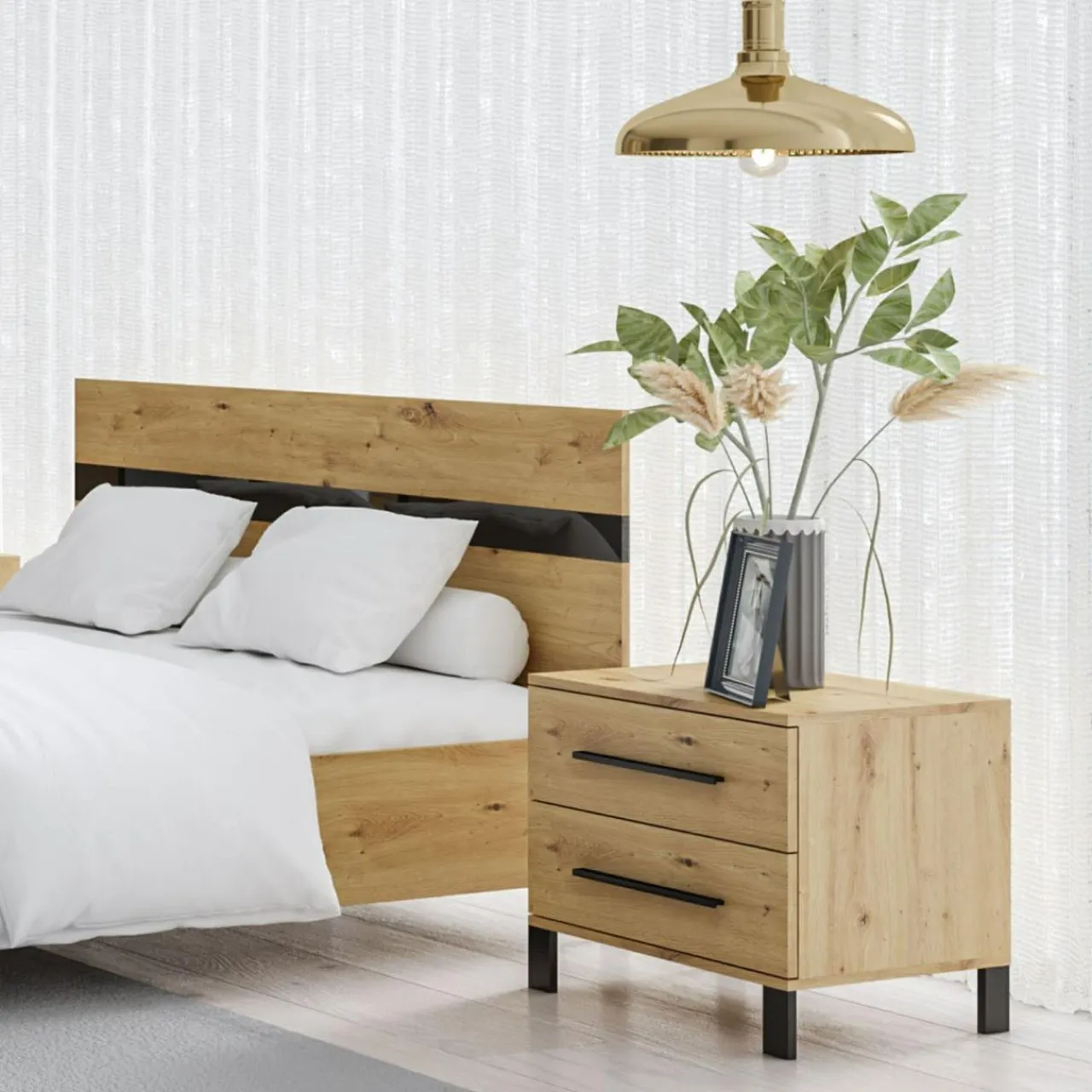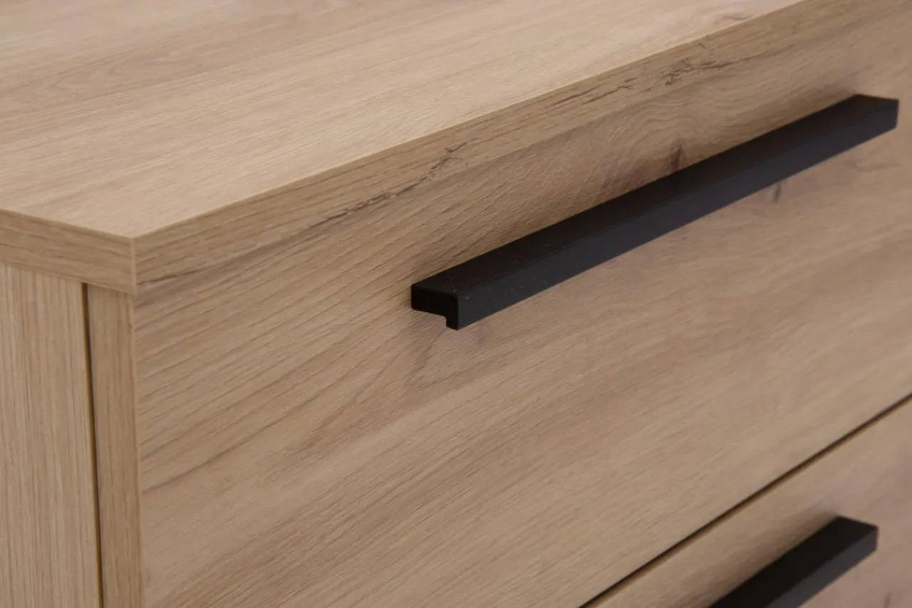- Nowoczesny design, minimalistyczne uchwyty oraz wykończenie w kolorze naturalnego drewna sprawi, że szafka nocna MALTA uzupełni każde wnętrze w nowoczesnym stylu.