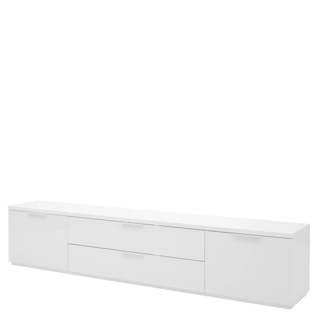 Na środku szafki RTV zostały zaprojektowane 2 szafki uchylne.