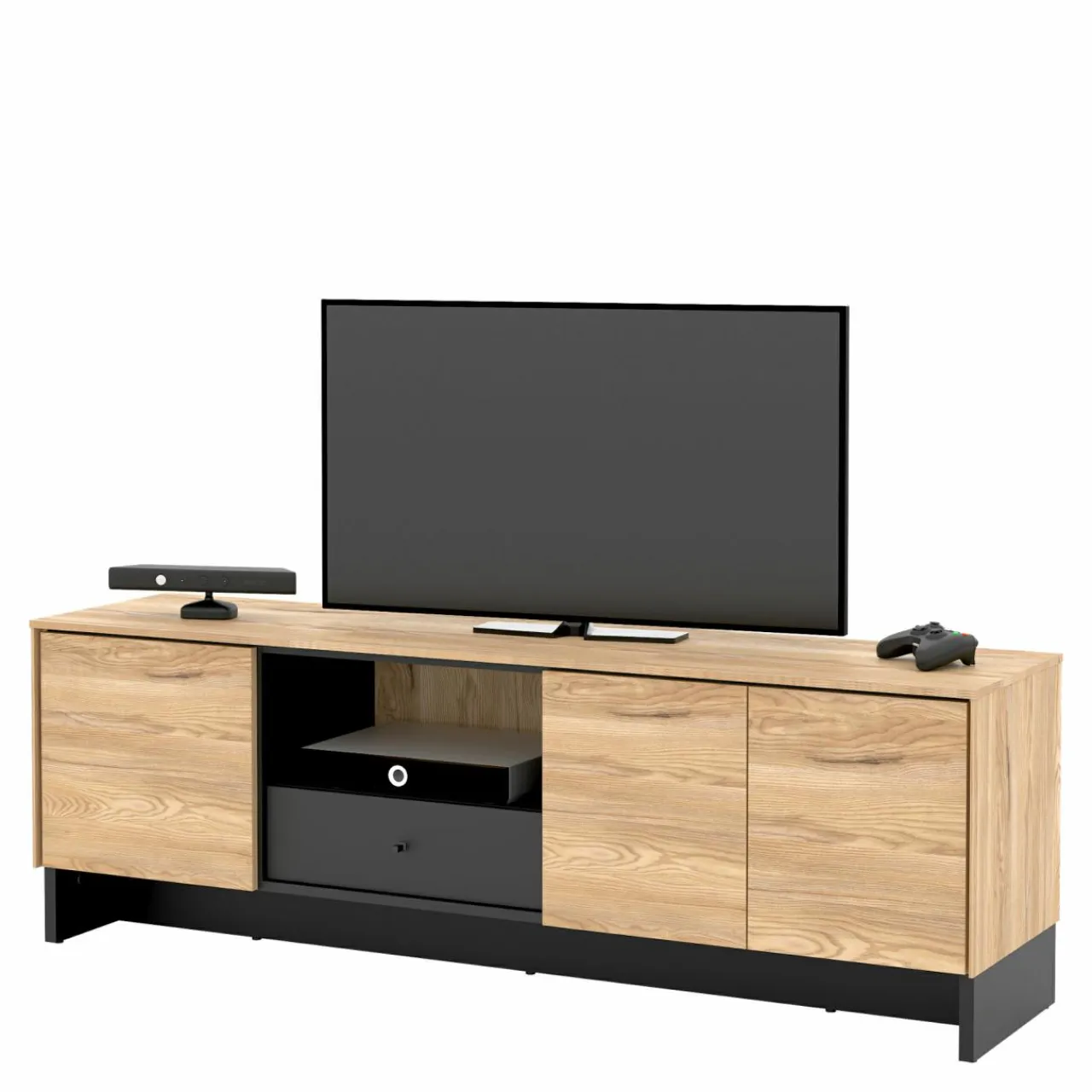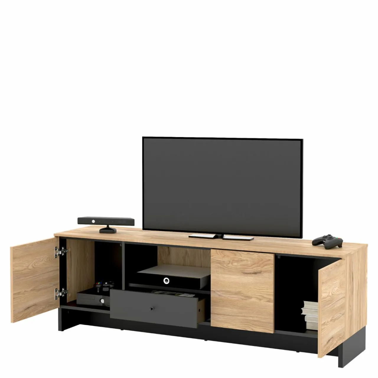 - Na blacie szafki RTV NOMAD możesz postawić telewizor lub rozstawić na nim zestaw nagłaśniający.