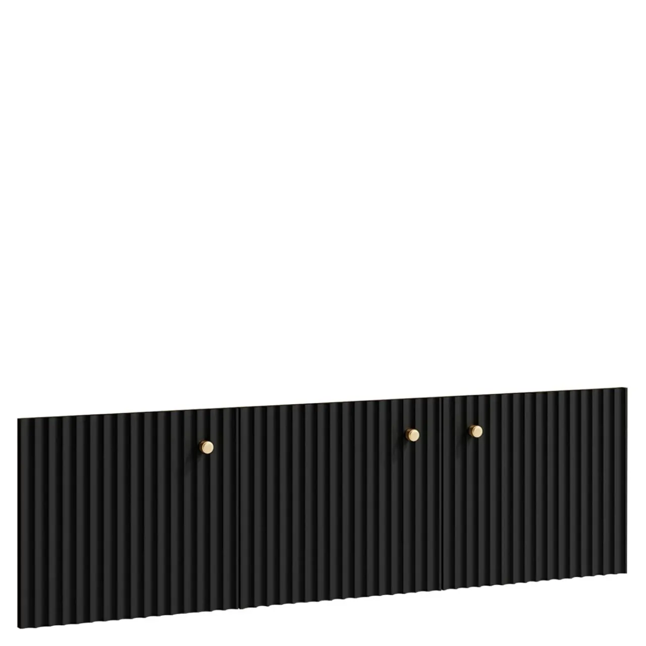 To potrójne, czarne drzwi z uchwytami z kolorze złotym.