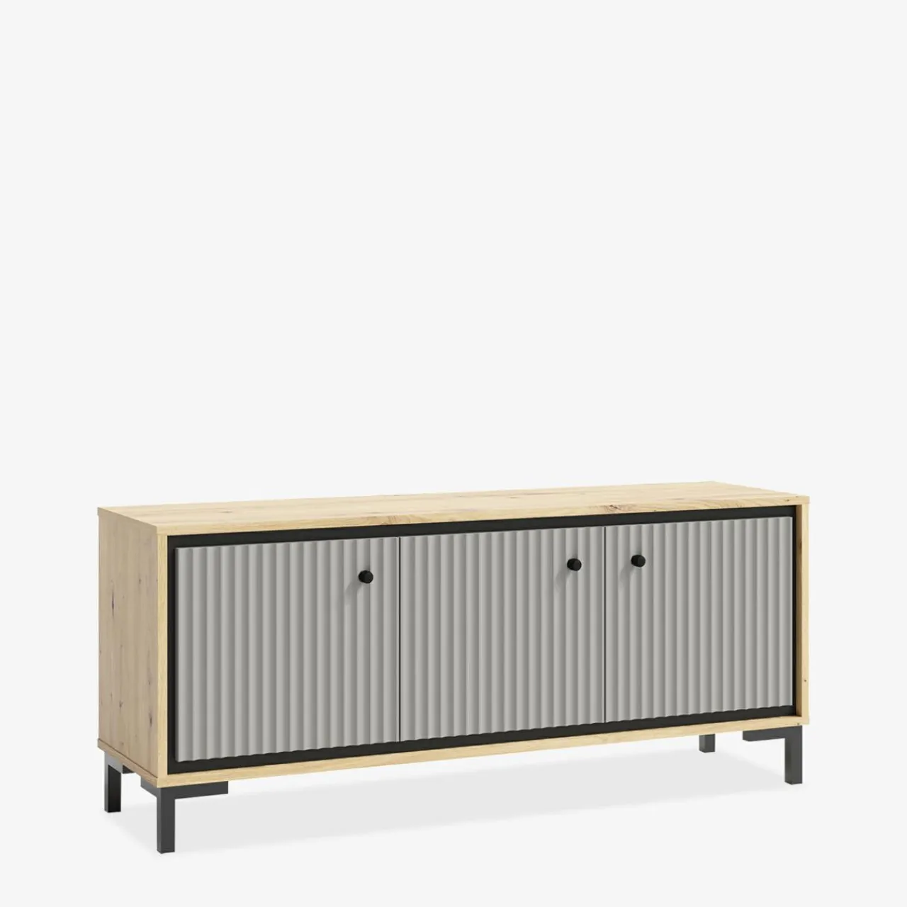 Fronty z ryflowaniem oraz korpus w wybarwieniu dąb artisan sprawiają, że meble wpasowują się w nowoczesne trendy.