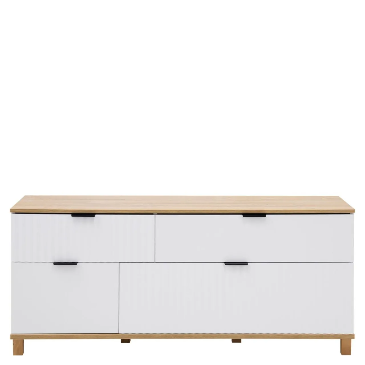 Szafka z szufladami RTV w stylu skandynawskim PLISSEE sprawdzi się w niewielkim salonie.