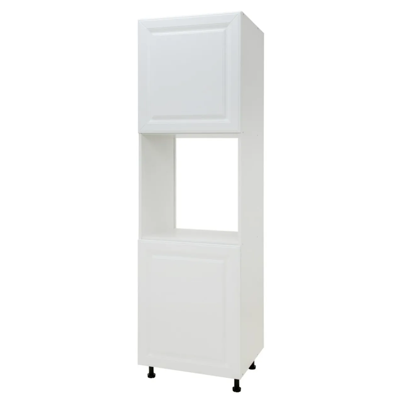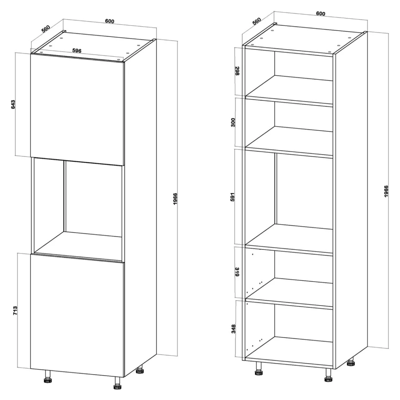 Wysoka na 197 cm szafka z zamykanymi wnękami na na górze i dole mebla świetnie pasuje zarówno do kuchni o charakterze liniowym oraz kątowym.