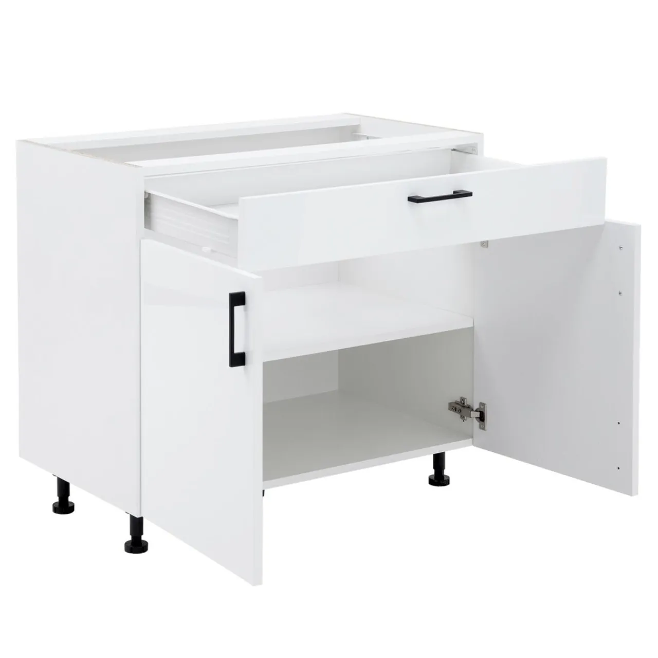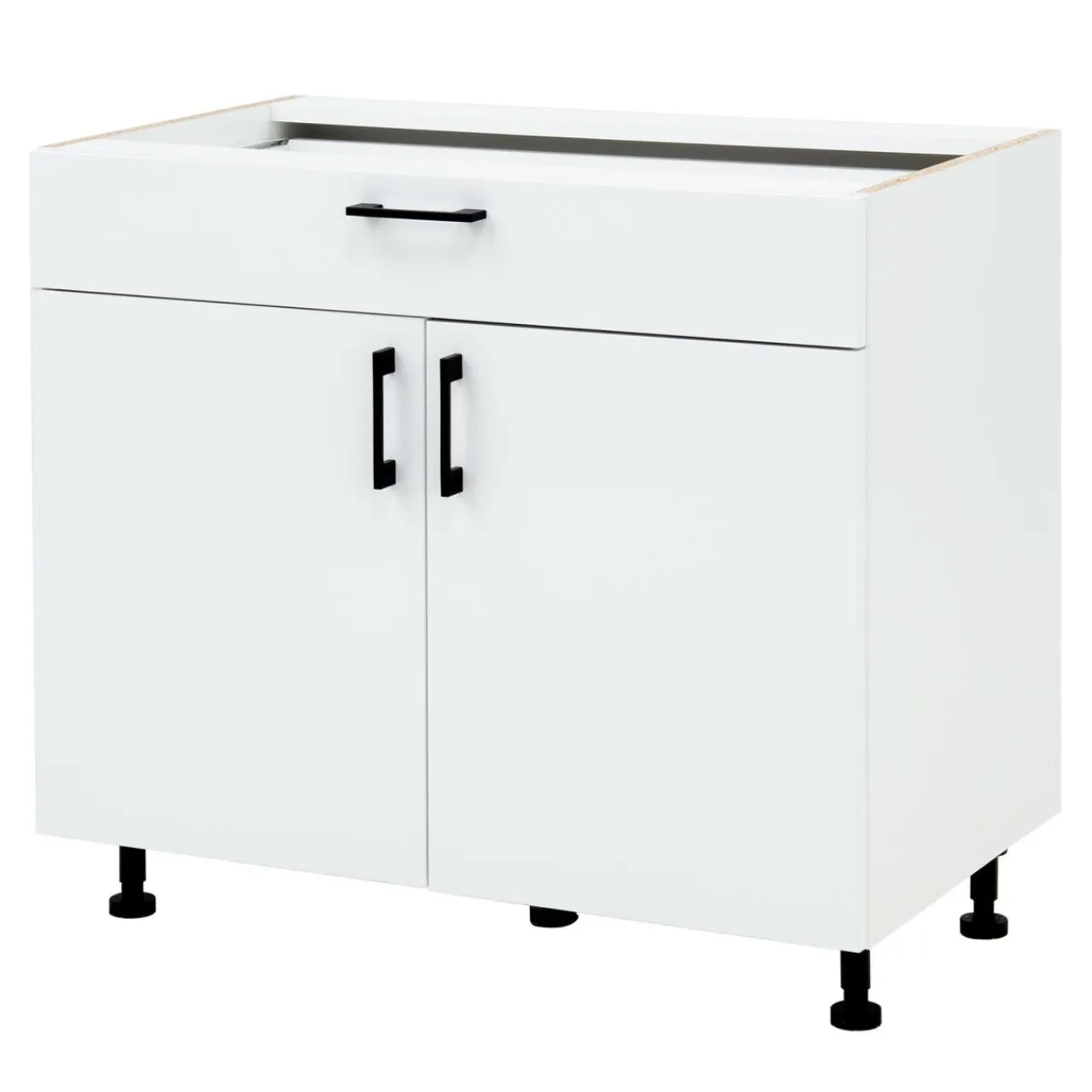 W jej przestronne wnętrzu możesz umieścić kolekcję garnków, komplety naczyń lub produkty żywnościowe, które zajmują dużo miejsca. Funkcjonalna szuflada umieszczona tuż pod blatem to idealne miejsce do trzymania sztućców.
