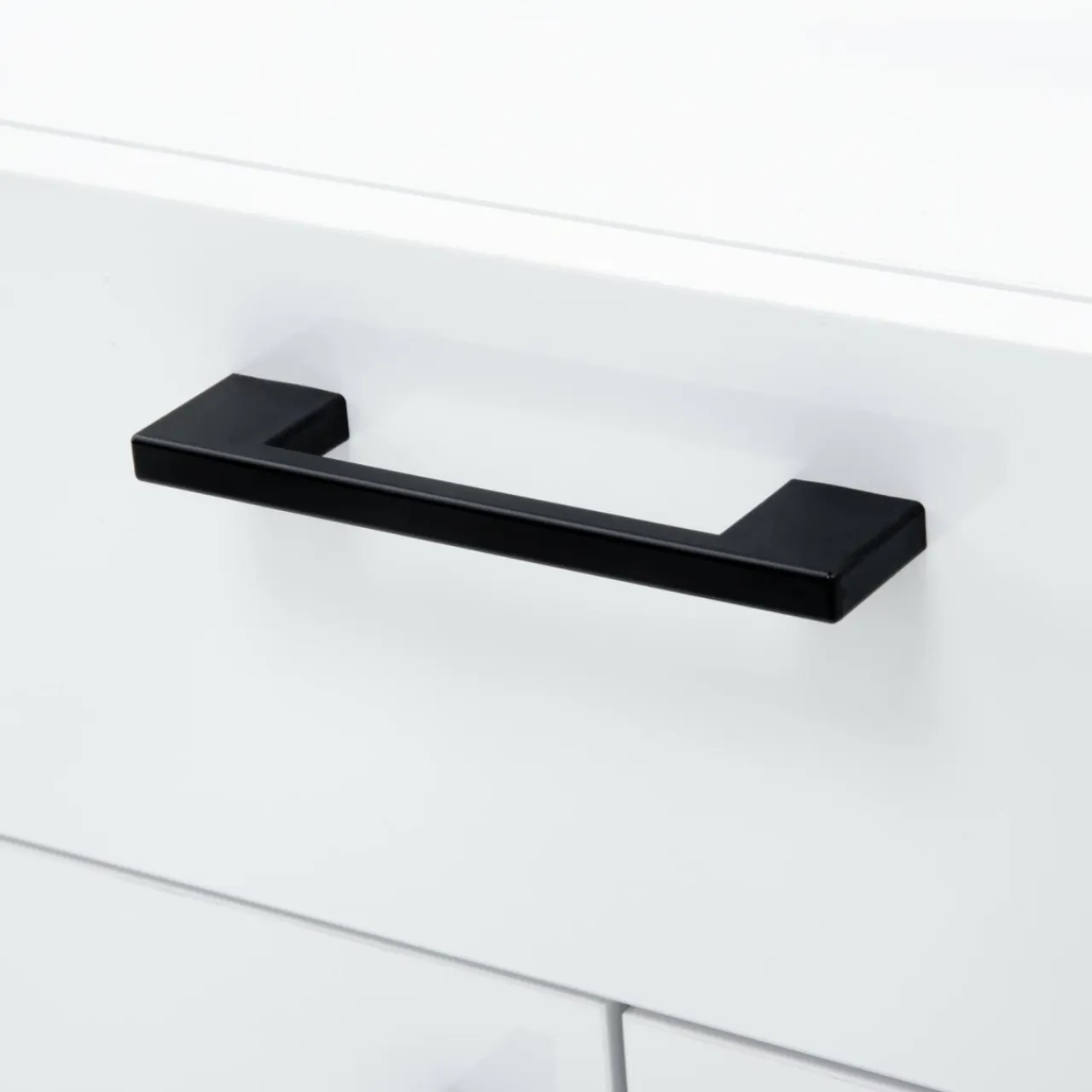 - Do szafki i szuflady są dedykowane uchwyty z tworzywa w czarnym, matowym kolorze (rozstaw 96 mm).