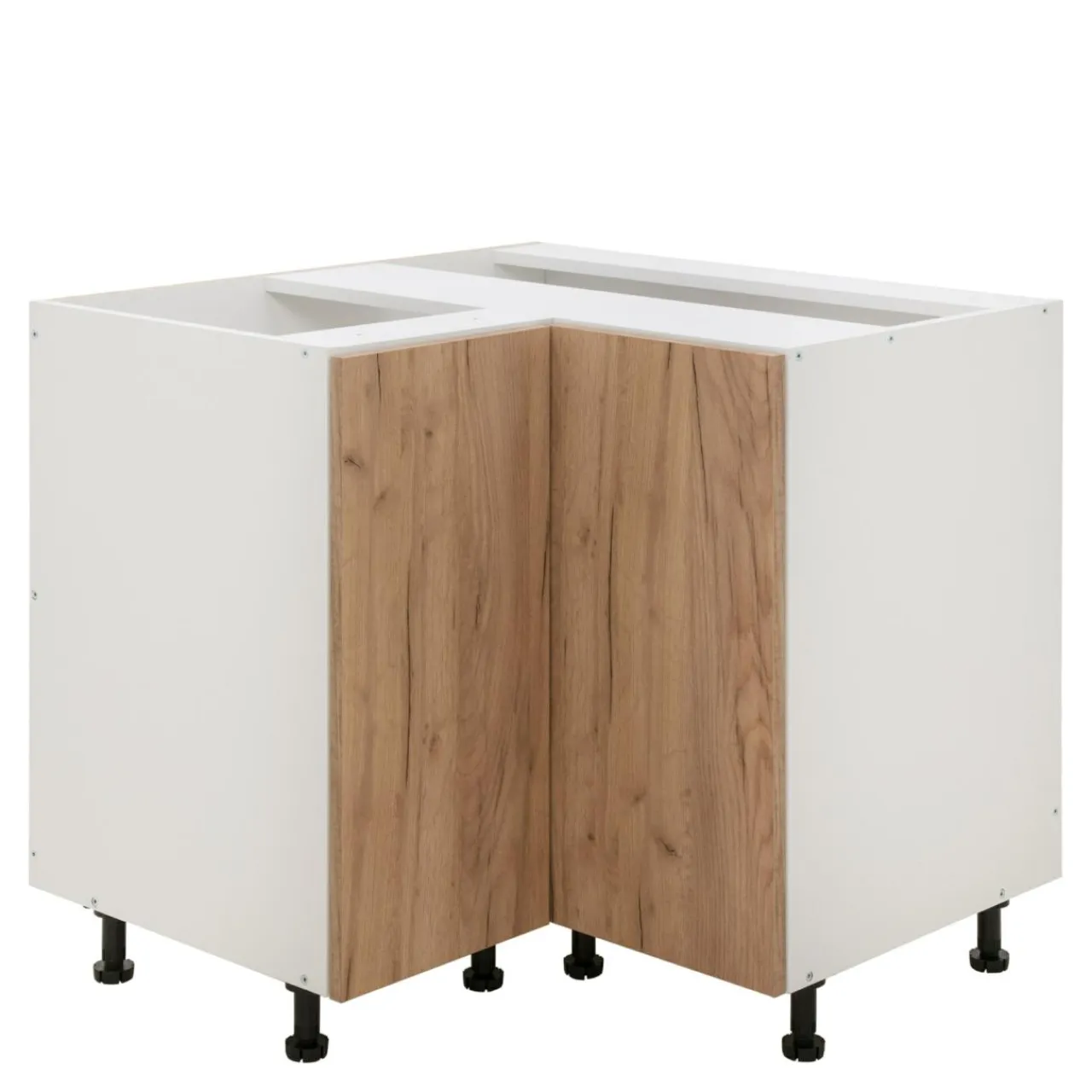 Ten model szafki BASIC PLUS świetnie sprawdza się w kameralnym wnętrzu. Jej front został wykończony laminatem. Biały kolor korpusu oraz front w kolorze drewna złoty dąb craft są doskonałą bazą dla zestawienia z jasną kolorystyką pozostałych mebli wchodzących w skład kuchennej aranżacji.