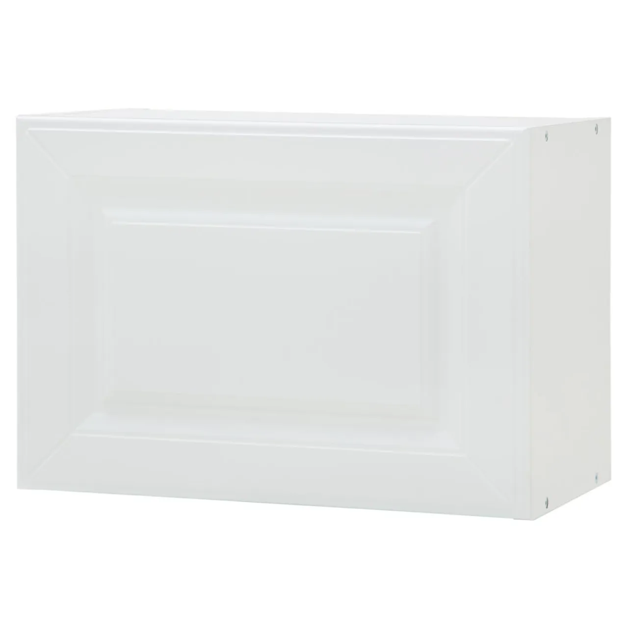 Front szafki został wykończony w matowym odcieniu bieli. Uwagę zwraca charakterystyczna ramka, wewnątrz której umieszczone zostało zdobienie. Drzwi otwierają się do góry, dzięki gazowym siłownikom. Wnętrze idealne nadaje się dla niewielkich naczyń oraz produktów żywnościowych i przypraw, które dobrze mieć w zasięgu ręki podczas przyrządzania posiłków.