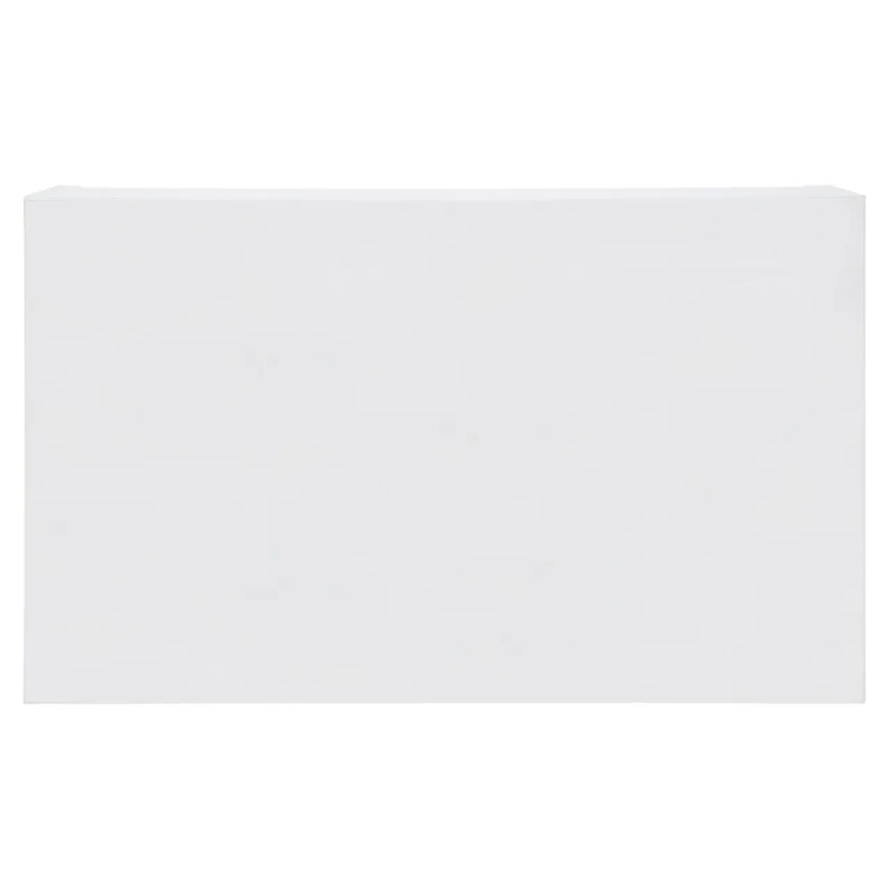 Front szafki został wykończony taflą białego akrylu z widocznym połyskiem. Drzwi otwierają się do góry, dzięki gazowym siłownikom. Przy podstawie szafki znajduje się panel z oświetleniem LED.