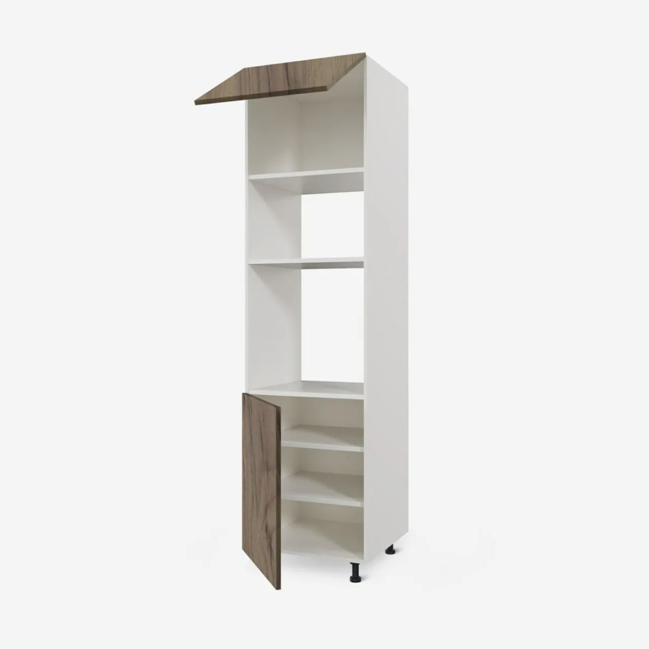 - Wysoka na 220 cm (plus nóżki) szafka sprawdzi się przy rozplanowaniu rzeczy, które warto mieć pod ręką podczas podgrzewania i pieczenia.