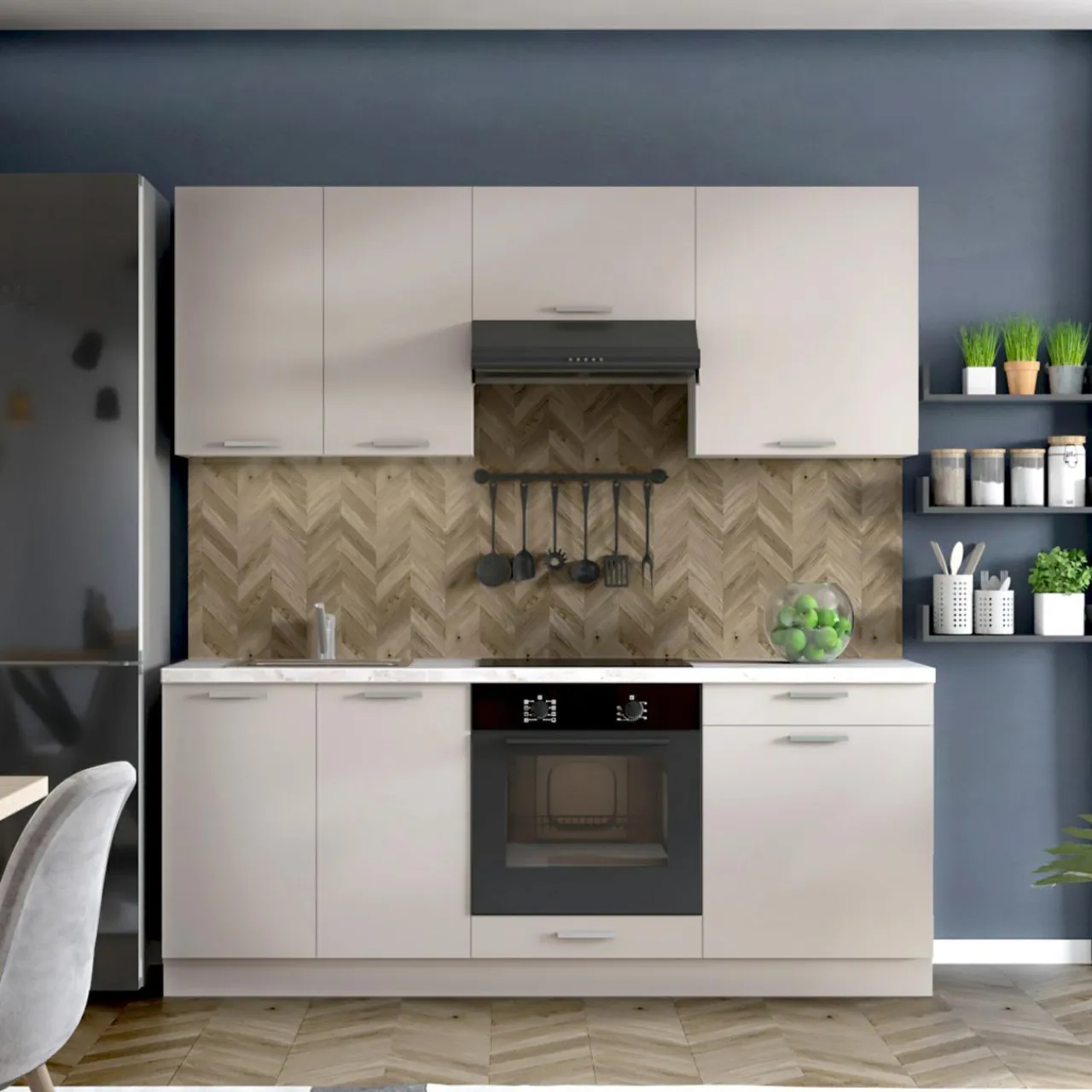 Odcień kaszmiru dodaje wnętrzu subtelności i przytulnego charakteru, wprowadzając łagodny akcent do kuchni. Szafka doskonale pasuje zarówno do nowoczesnych, jak i klasycznych stylizacji, tworząc spójną i estetyczną całość.