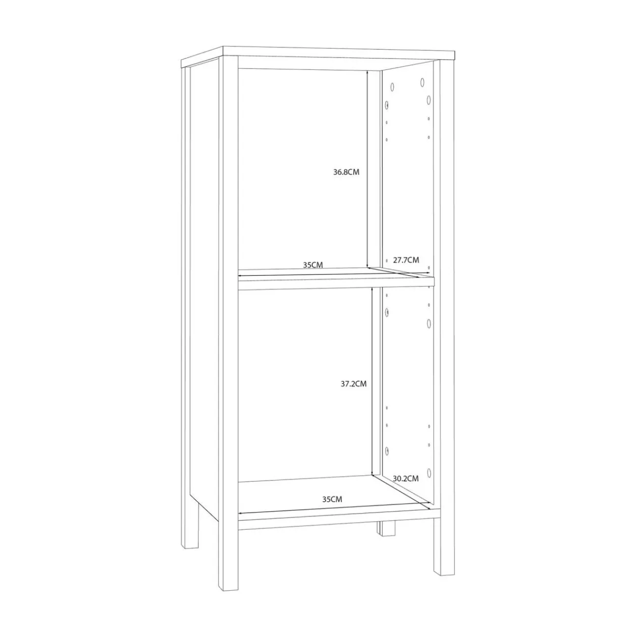 W komodzie IPSARION znajdują się 2 wysokie wnęki, w których bez problemu przechowasz zapasową chemię, ręczniki i pozostałe akcesoria łazienkowe.