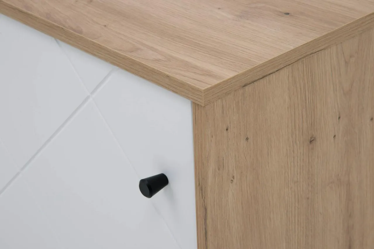 - Kolekcja mebli BILBAO łączy w sobie elementy stylu skandynawskiego i nowoczesnego, a geometrycznie zdobione fronty nadają wnętrzu nietuzinkowy charakter.