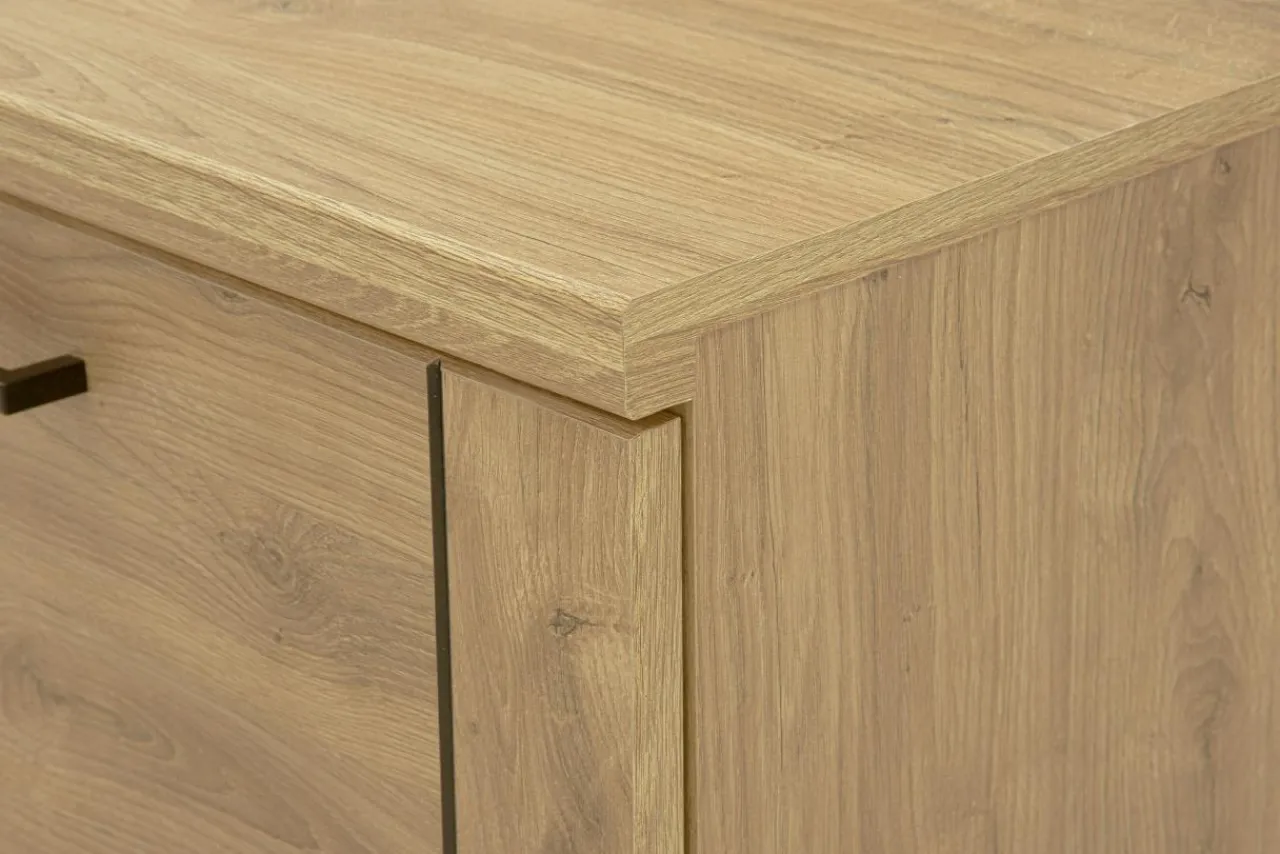 - Korpus oraz fronty szafki wykonane są z płyty meblowej i pokryte laminatem.