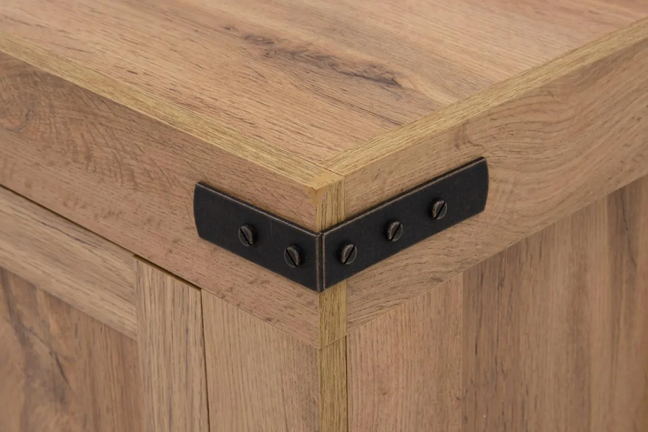 Posiada ozdobne okucia, które nadają jej rustykalnego charakteru oraz stylizowany, wykonany z tworzywa uchwyt.