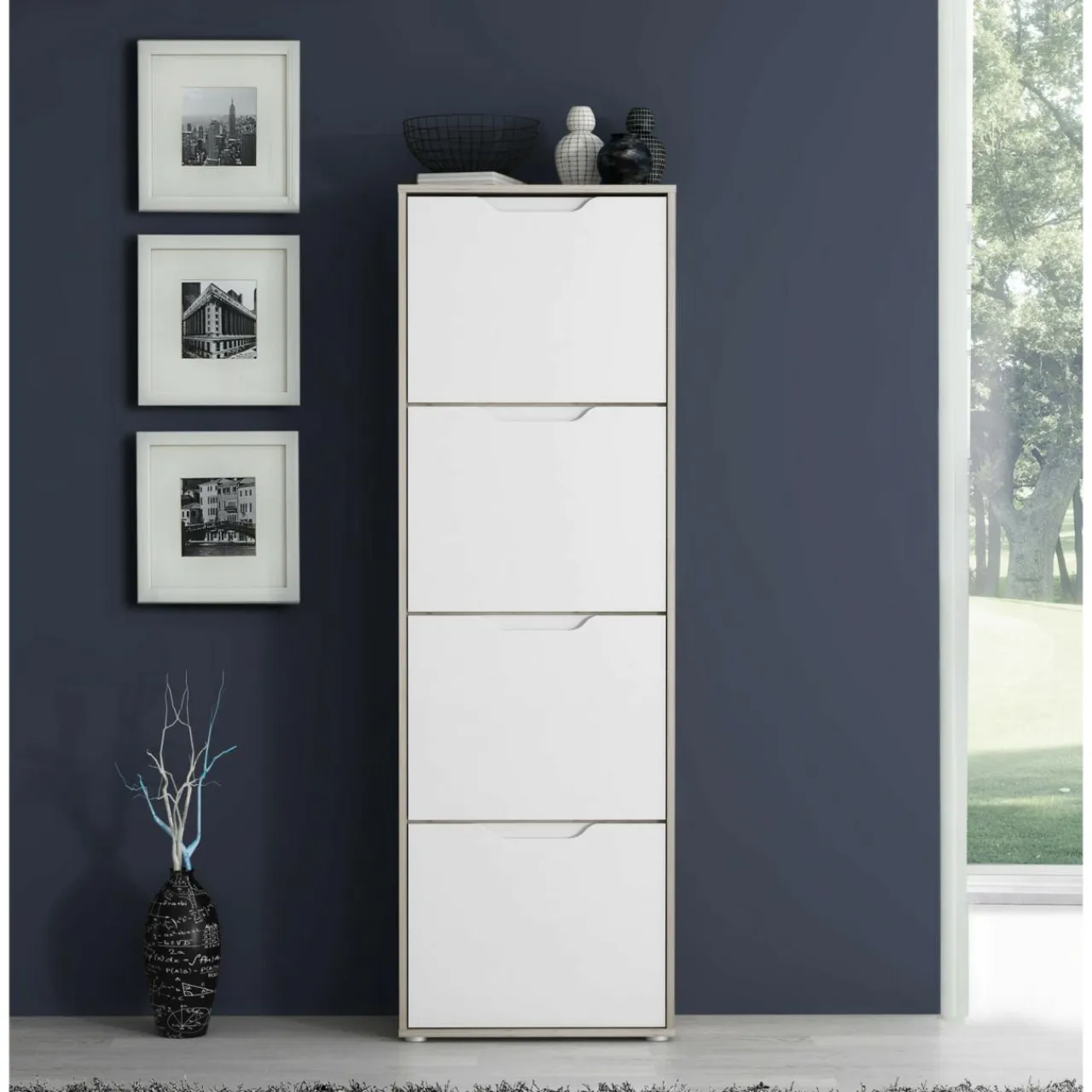 Wysoka i wąska szafka pozwoli przechowywać buty nawet w wąskim przedpokoju.