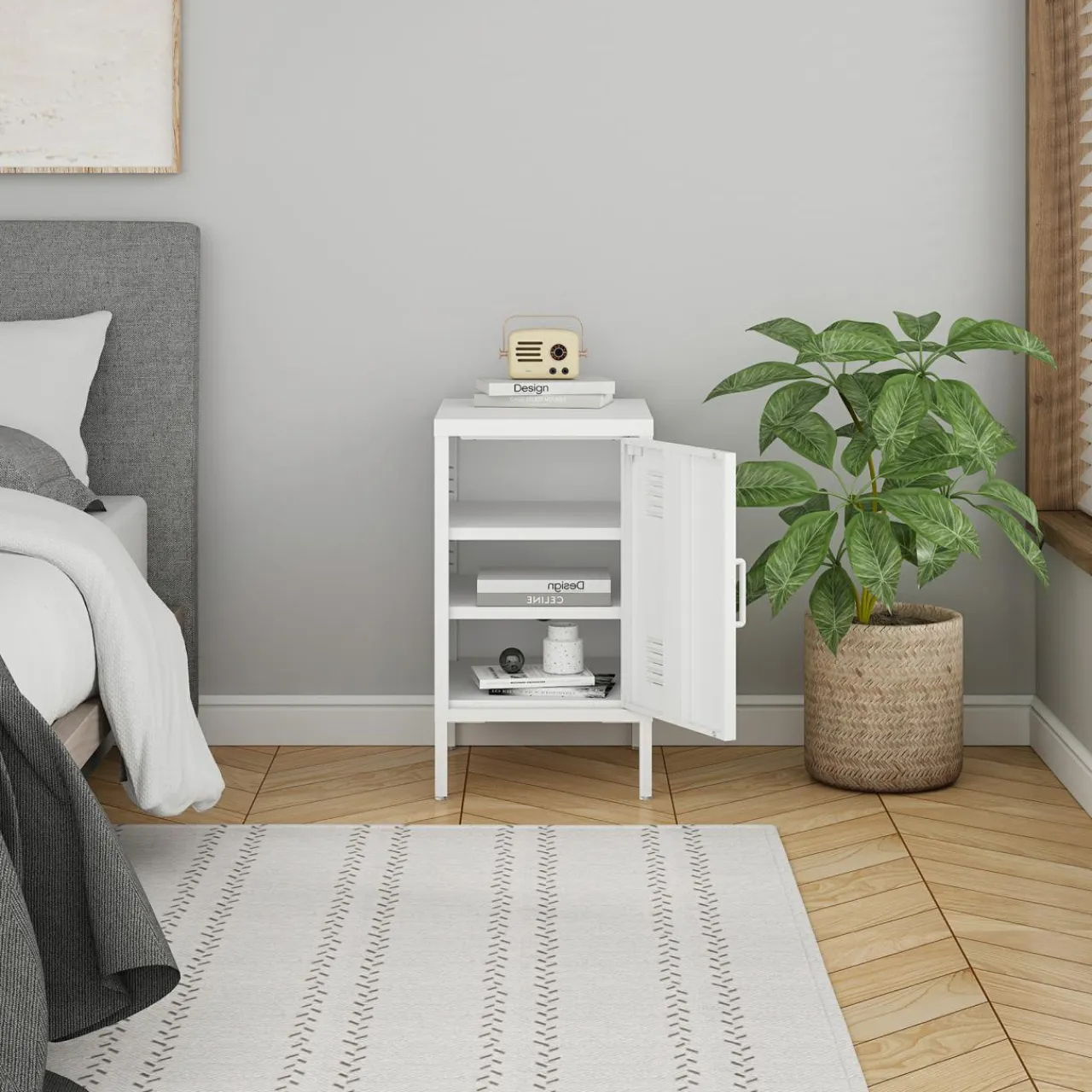 - Konstrukcja przypominająca kultowe szafki z lat 60. i 70. świetnie wpisze się w retro wnętrza. Będą również stanowiły ciekawy akcent w stylu industrialnym, nowoczesnym czy eklektycznym.