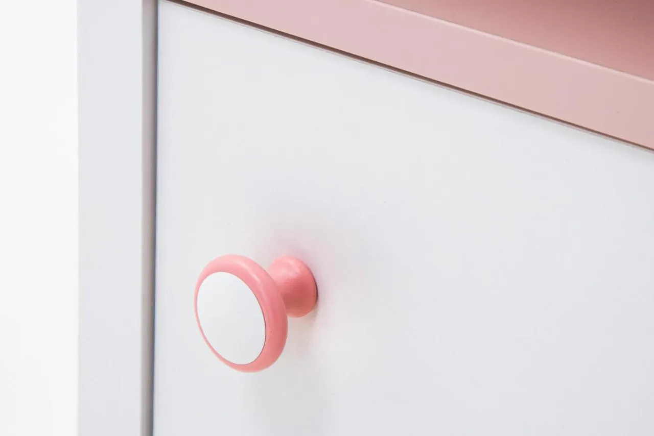 Mebel został wykonany z płyty laminowanej. Laminat cechuje się trwałością i jest łatwiejszy w utrzymaniu czystości.