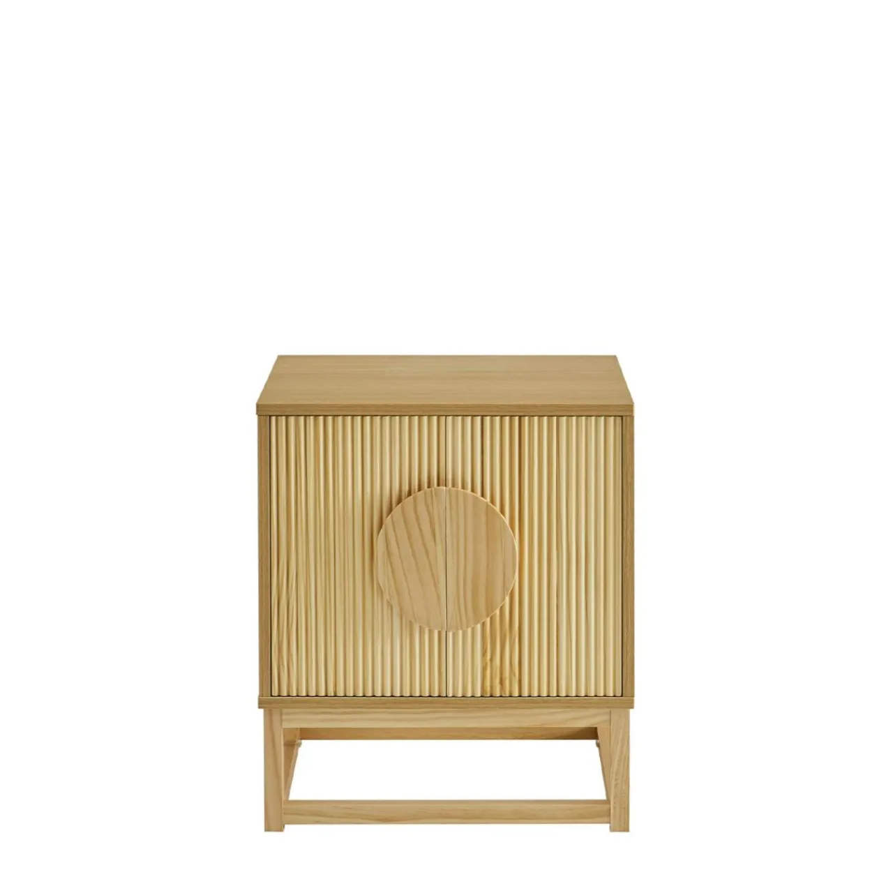 Szafka nocna TIRON wykończony jest okleiną przypominającą jasne drewno.
