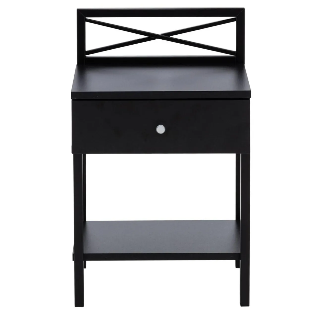 Szafka nocna ELIO I świetnie pasuje do sypialni, urządzonej w surowym stylu industrialnym.