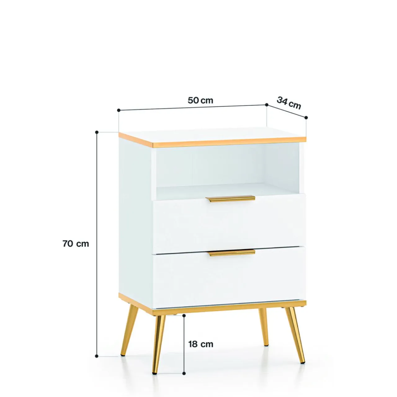 Szafka nocna VITERBO posiada aż 70 cm wysokości. Świetnie sprawdzi się przy wyższych łóżkach lub gdy wolisz odstawić szklankę z wodą poza zasięgiem ręki.