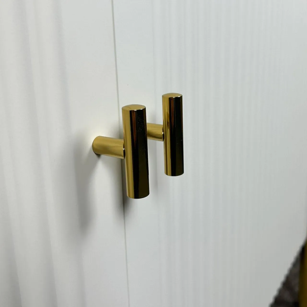 Złote uchwyty i nóżki sprawiają, że meble nabierają charakteru glamour w nowej odsłonie. Proste kształty wykończeń cieszą oko delikatnie odbijanym światłem.